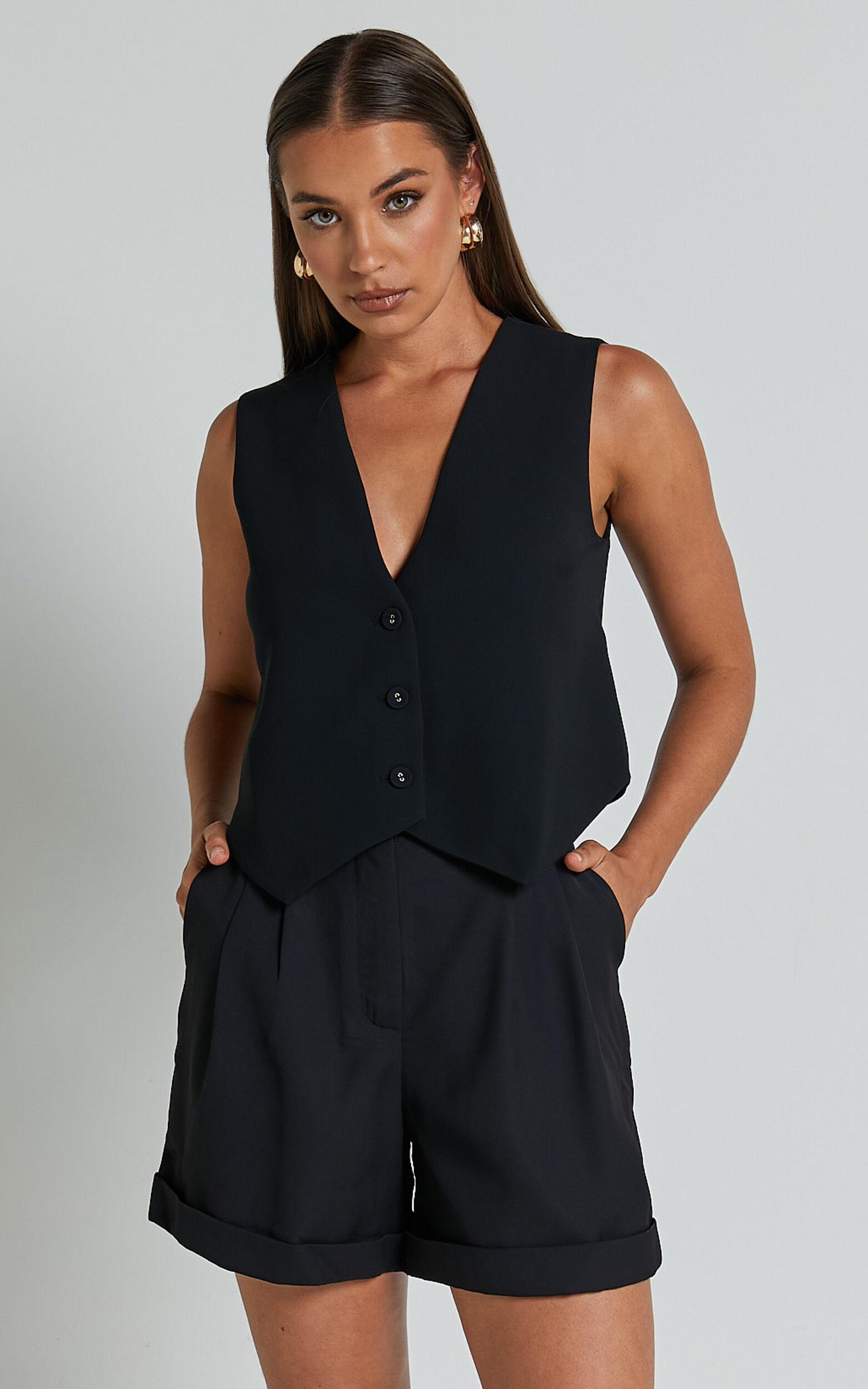 Elevate your summer style with our Charla Shorts! These high waisted cuffed hem shorts in black are the perfect addition to any fashionista's wardrobe. Made from a lightweight and breathable polyester fabric, these tailored shorts offer both comfort and style. Whether you're dressing them up for a night out or keeping it casual with a basic tee, the Charla Shorts will have you looking effortlessly chic all season long. Say hello to your new go-to pair of shorts!Product Details:High waist tailored shortsZip and button closureFunctional pocketsCasual styleMade from polyester fabricSize and FitSize S / 8 length: 41cm / 16.14inMaterial and CareMain Fabric: 100% PolyesterNo Stretch