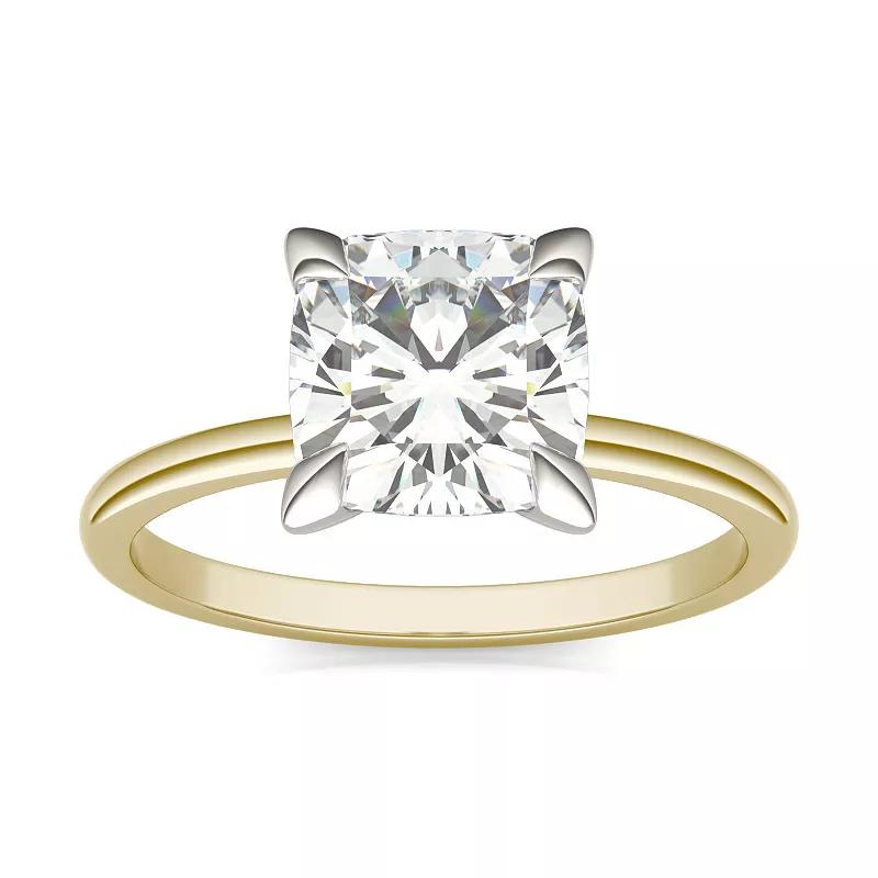 Complement your look with this Charles & Colvard 14k Two Tone Gold 2 Carat T.W. Lab-Created Moissanite Cushion Solitaire Ring. Click on this JEWELRY & WATCHES GUIDE to learn about fit, styles, materials and more! Complement your look with this Charles & Colvard 14k Two Tone Gold 2 Carat T.W. Lab-Created Moissanite Cushion Solitaire Ring. Click on this JEWELRY & WATCHES GUIDE to learn about fit, styles, materials and more! FEATURES Width: 19.80 mm Shank style: solitaire Metal: 14k gold Plating: rhodium Finish: polished Packaging: boxed ImportedSTONE DETAILS Stone type: lab-created moissanite Total weight: 2 ct. Center stone weight: 1 7/8 ct. Center stone size: 7.5 mm Shape: cushion cut Setting: prong Gemstones may have been treated to enhance their appearance. Special care may be required. Please visit our Gemstone Treatment & Special Care Guide for more information. Gender: female. Age Group: adult.