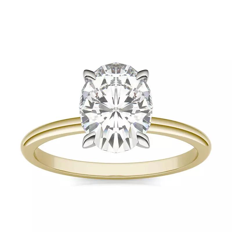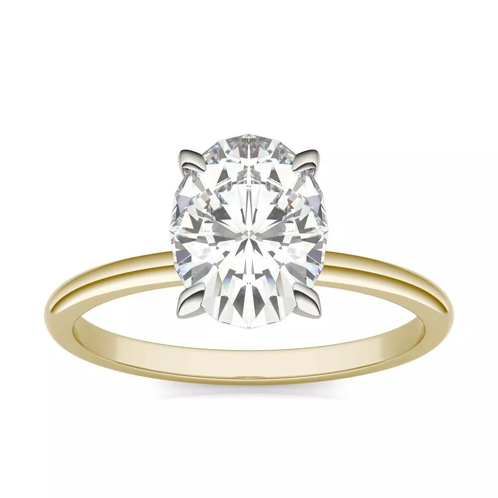 Enchant yourself with this stunning Charles & Colvard 14k Two Tone Gold 2 Carat T.W. Lab-Created Moissanite Solitaire Ring. Click on this JEWELRY & WATCHES GUIDE to learn about fit, styles, materials and more! Enchant yourself with this stunning Charles & Colvard 14k Two Tone Gold 2 Carat T.W. Lab-Created Moissanite Solitaire Ring. Click on this JEWELRY & WATCHES GUIDE to learn about fit, styles, materials and more! FEATURES Width: 17.25 mm Shank style: solitaire Metal: 14k gold Plating: rhodium Finish: polished Packaging: boxed ImportedSTONE DETAILS Stone type: lab-created moissanite Total weight: 2 ct. Center stone weight: 1 7/8 ct. Center stone size: 9.0 mm x 7.0 mm Shape: round brilliant Setting: prong Gemstones may have been treated to enhance their appearance. Special care may be required. Please visit our Gemstone Treatment & Special Care Guide for more information. Gender: female. Age Group: adult.