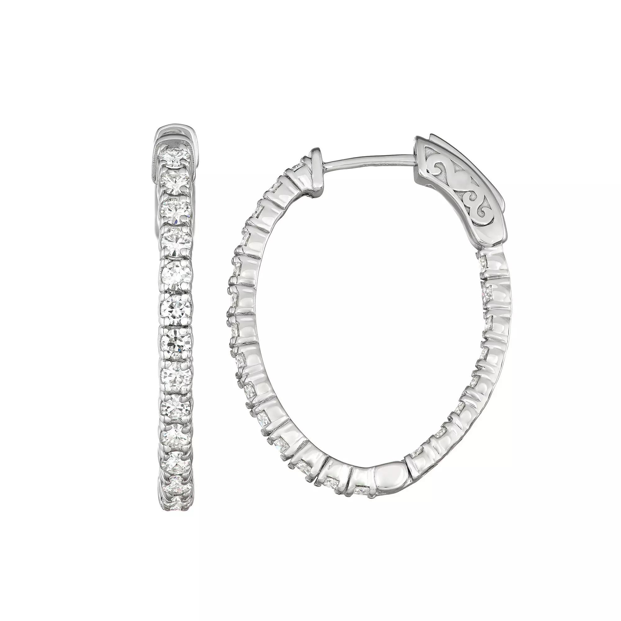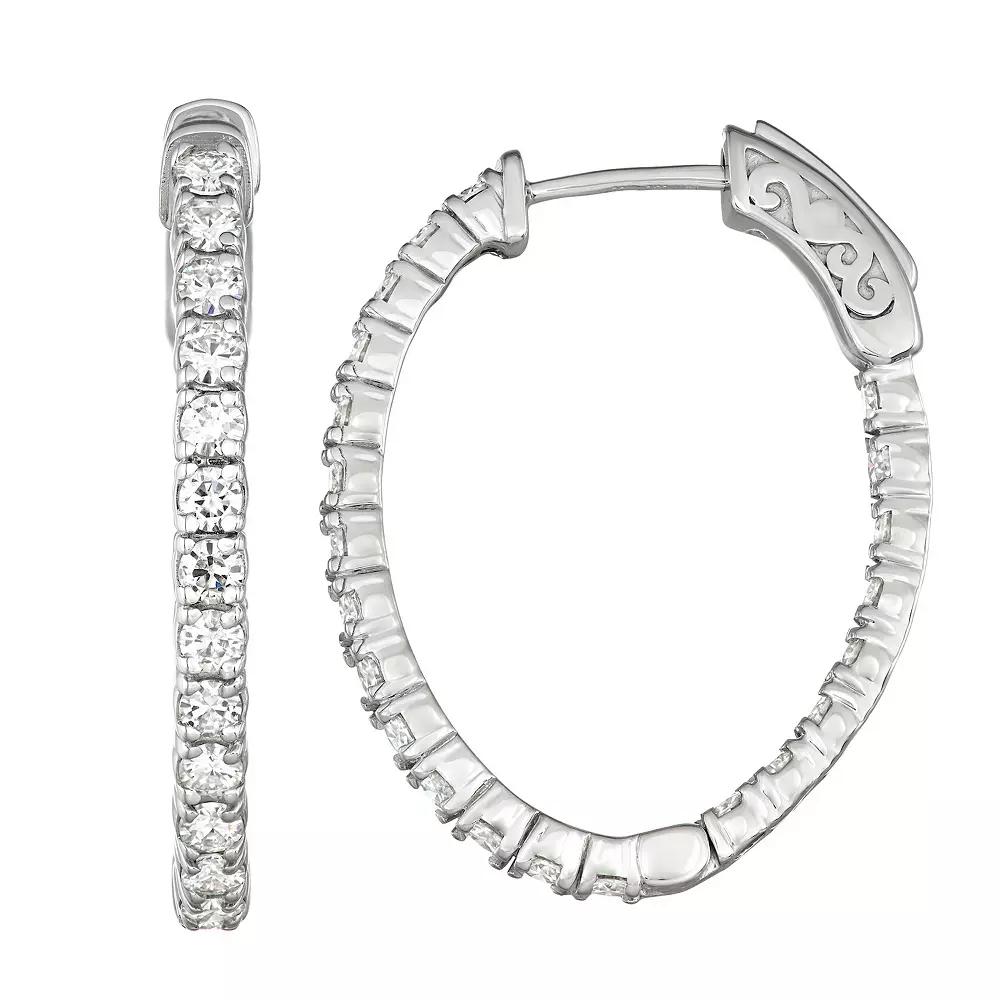 Ever-classic with elegant appeal, hoop earrings are a jewelry essential. This high-polish pair by Charles & Colvard® features repeating 1.76 ct. t.w. sparkly Moissanite stones set in 14K White Gold. | Charles & Colvard 1.76 Ct. T.w. Lab Created Moissanite Hoop Earrings, White