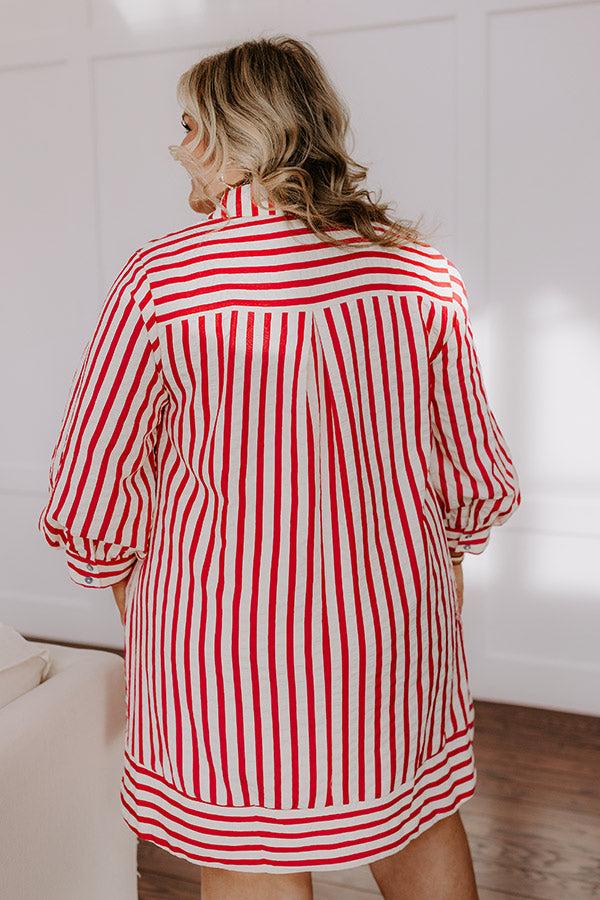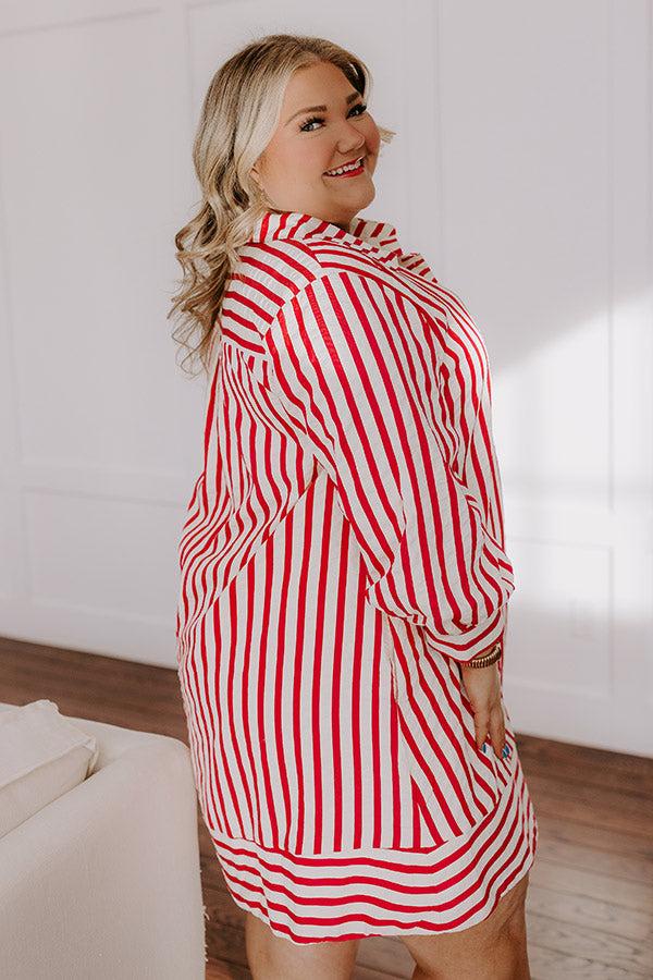 - Take a stroll down the boardwalk in this adorable mini dress! Featuring a timeless stripe pattern and lightweight fabric, it's a must-have for effortless style as we move into warmer days ahead. Stay trendy for spring break and beyond with this charming piece. - Lightweight material with a striped print - A built-in lining - Long sleeves with buttoned cuffs - A collared neckline - Hidden side pockets - A relaxed silhouette that ends in a straight hemline Measurements XL : Bust 50", Hip 58", Length 36", Sleeve Length 19", Waist 54". 1XL : Bust 52", Hip 60", Length 37", Sleeve Length 19", Waist 56". 2XL : Bust 54", Hip 62", Length 37.5", Sleeve Length 20.5", Waist 58".