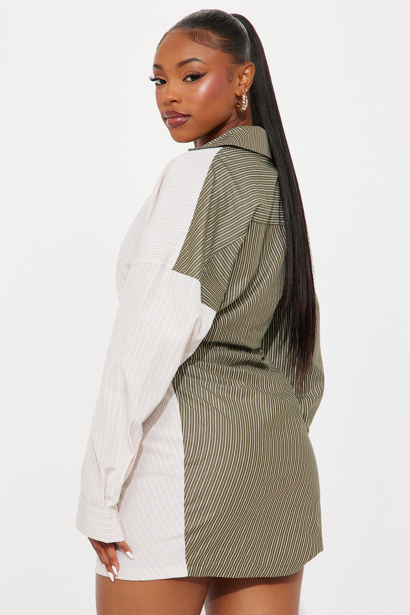 Charli Surplice Pinstripe Shirt Mini Dress - Olive/combo