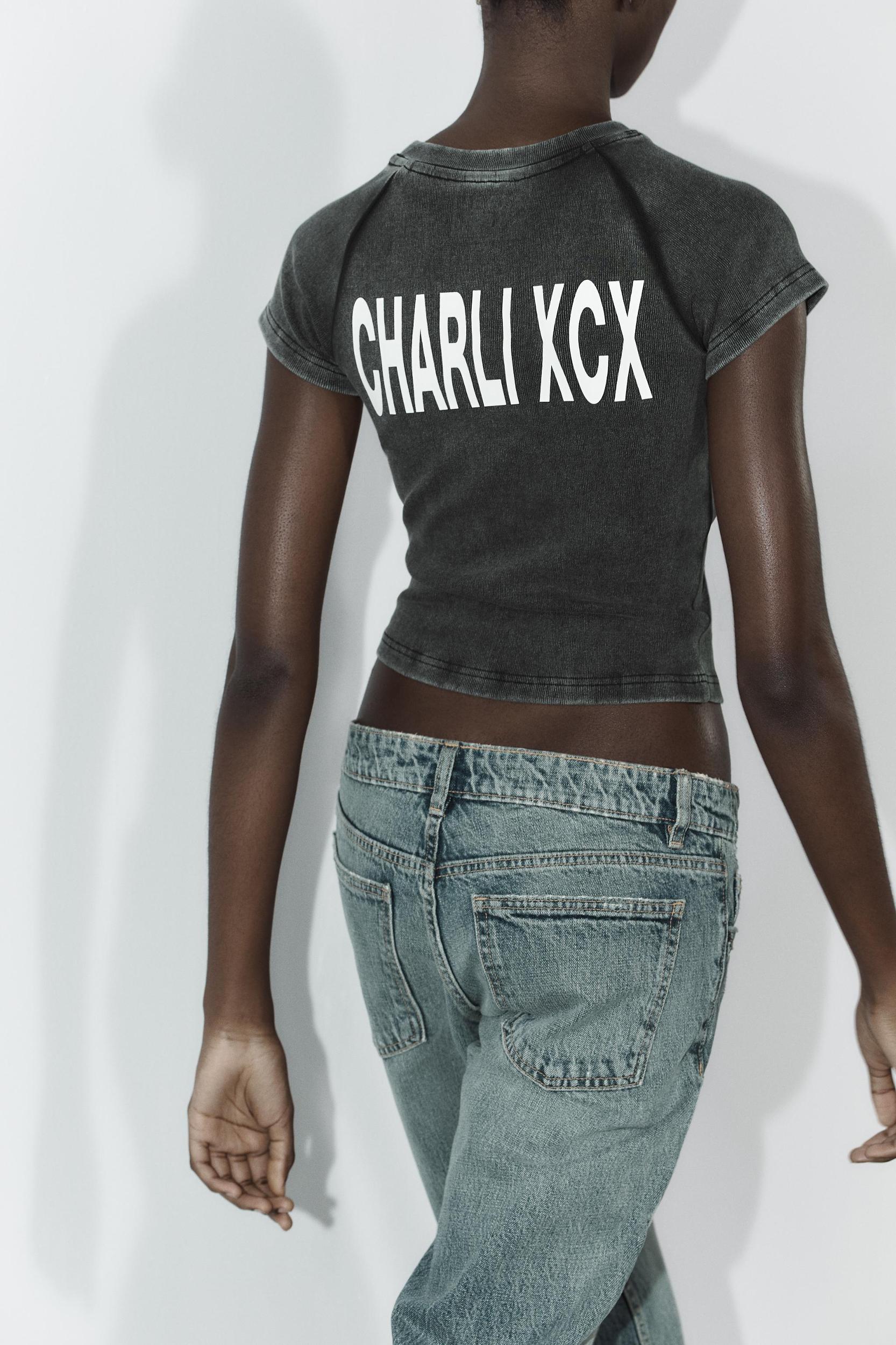 Washed effect T-shirt. Round neck and short sleeves. Charli XCX© text detail on front and back. Due to the dyeing and washing process, the color of each garment is unique and special, so it may differ from the one shown in the photo.