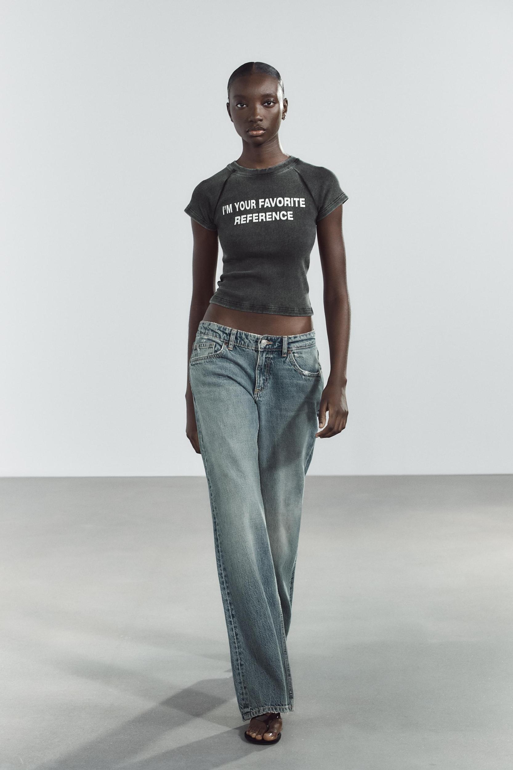 WASHED EFFECT T-SHIRT WITH SLOGAN