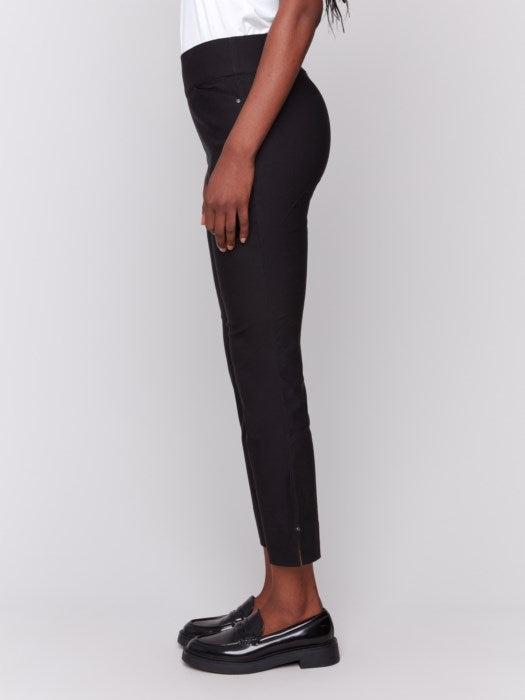 These are an awesome pull on capri with a thick flattening waistband! They are so comfortable and will become your go to basic capri. They have front pockets and a slit detail on the legs. Made of 76% rayon, 21% nylon, and 3% spandex. Machine wash in cold water and hang to dry.