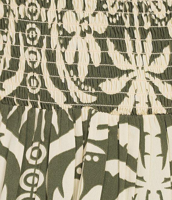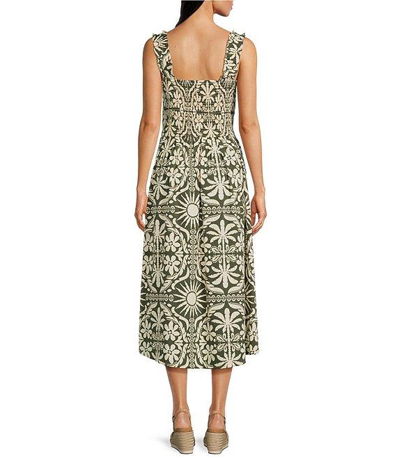 Charlie B. Floral Print Square Neck Shirring Sleeveless Midi A-Line Dress