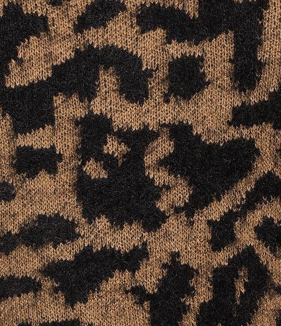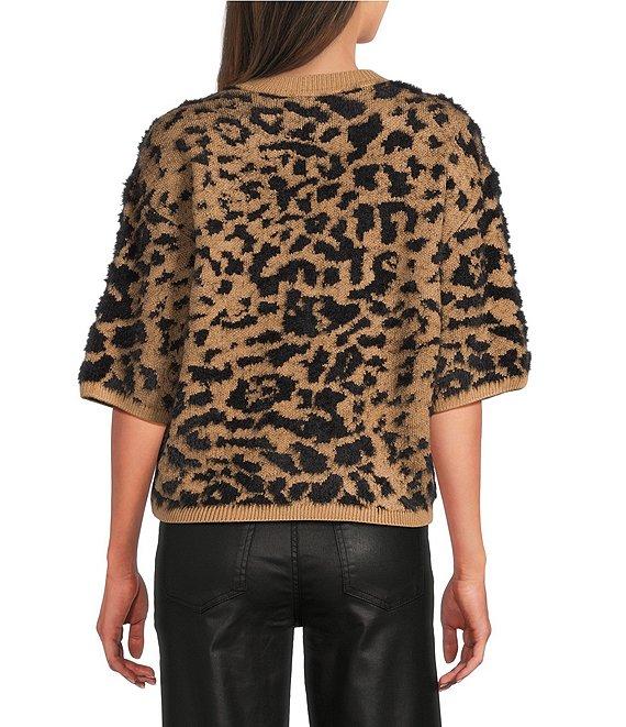 Charlie B. Knit Leopard Print Round Neck Short Balloon Sleeve Top