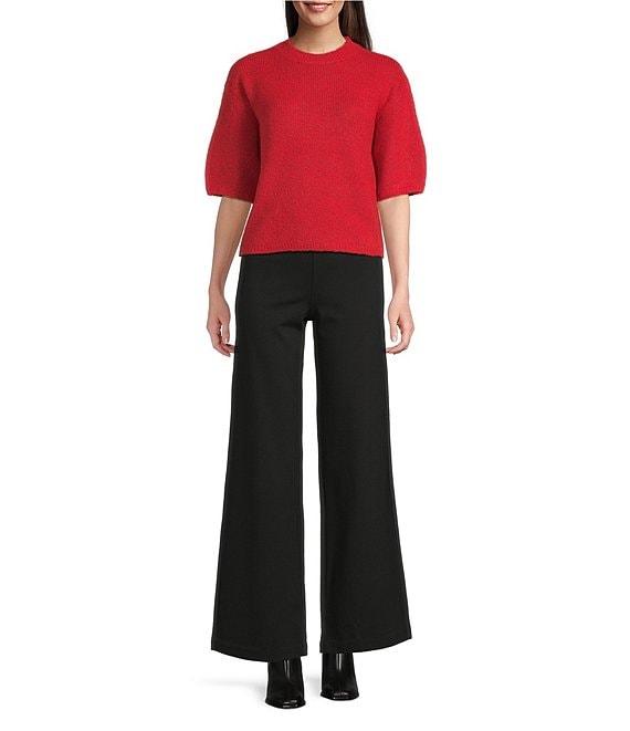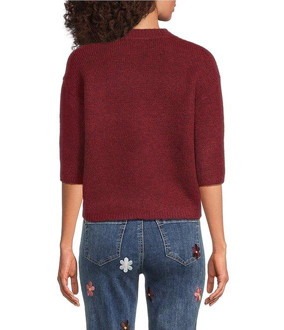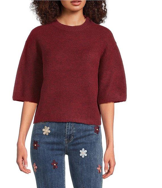 Charlie B. Knit Round Neck Elbow Sleeve Top