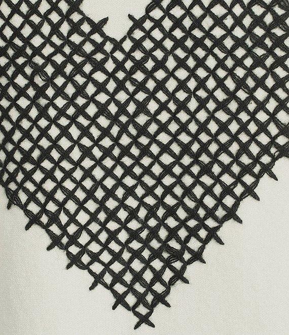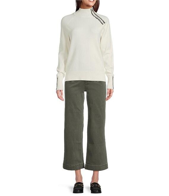 From Charlie B., this sweater features: Knit fabrication Turtle neckline Long raglan sleeves Zipper cuff and shoulder detail Cross stitch heart at back Straight hemline Pullover construction Approx. 24" back length Viscose/polyester/nylon Hand wash Imported.