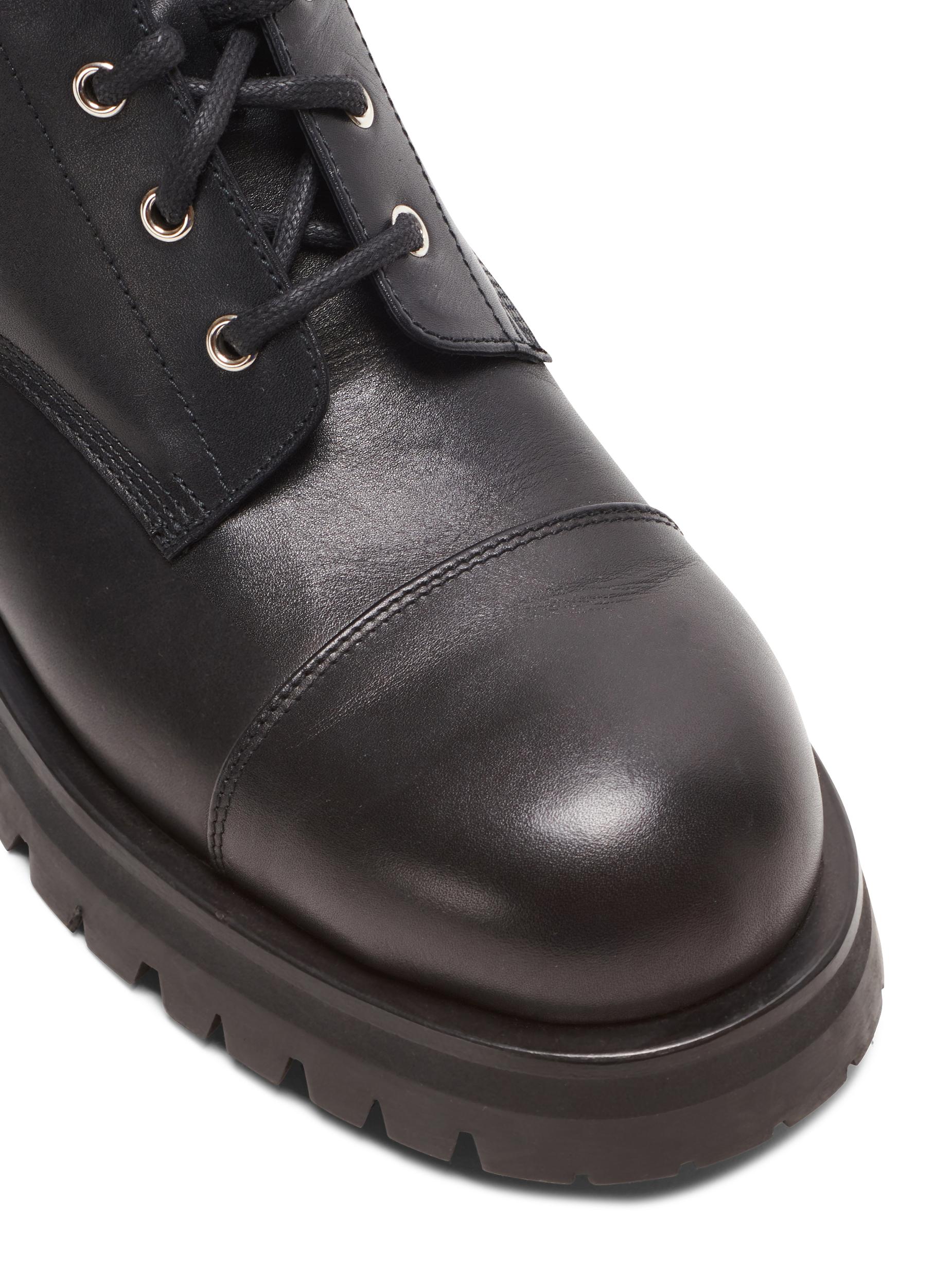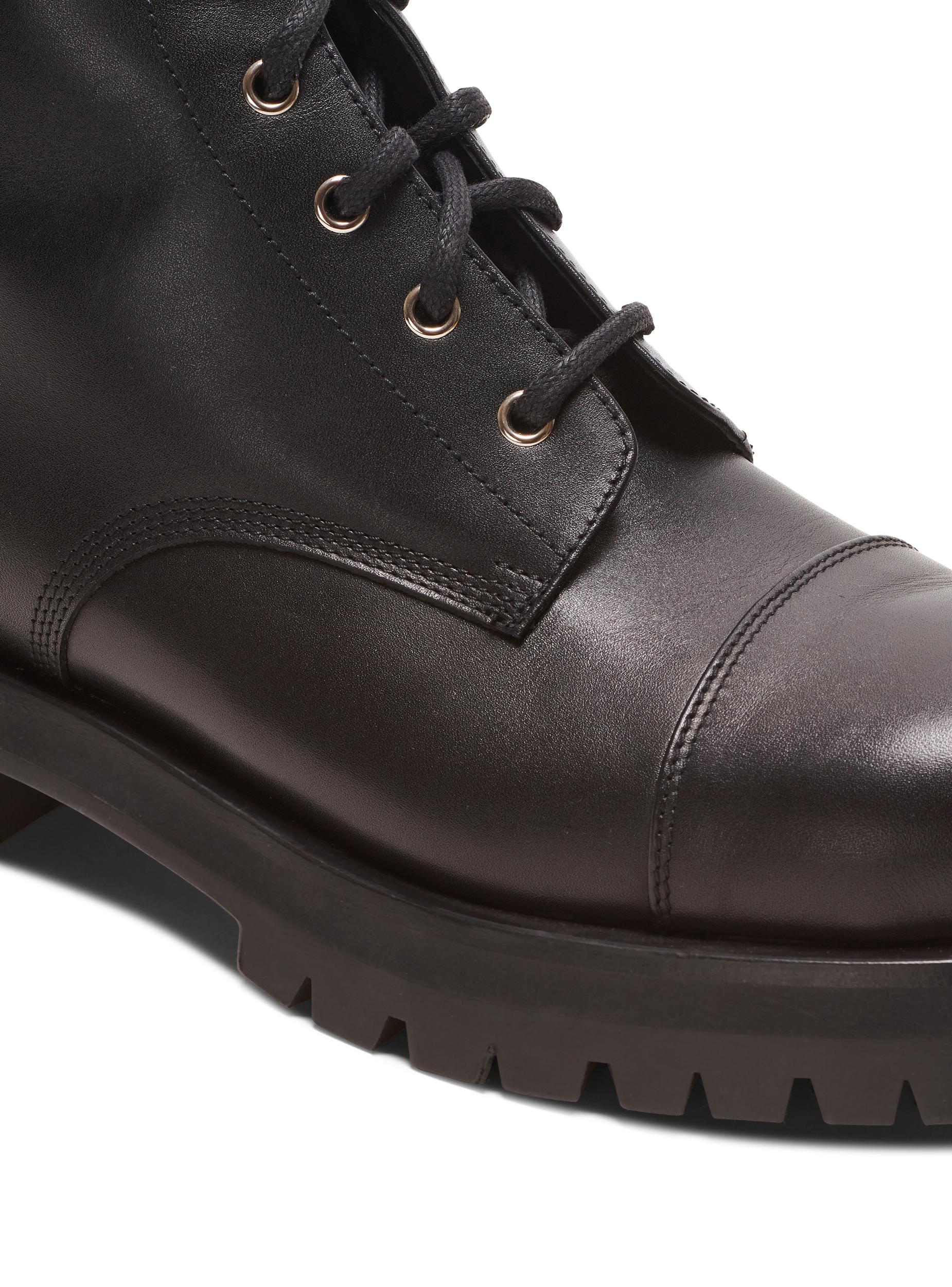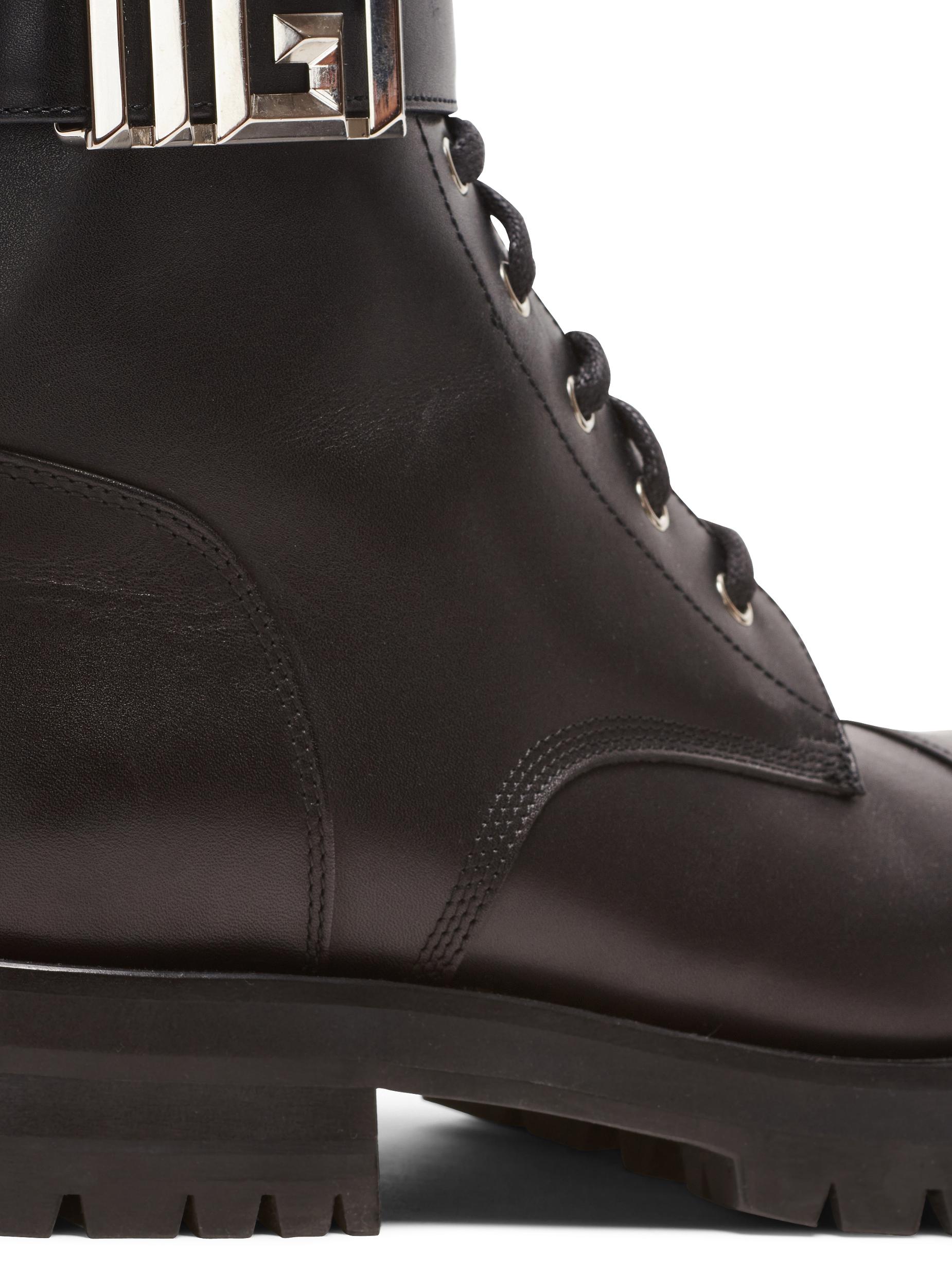 Charlie smooth leather ranger bootsRound toeCleated soleDetachable ankle strap detail, metal PB logoLace-up fastening with PB engraved eyelets and hooksMetal inside zipSilver hardware finishRear leather pull loopRubber outer soleLeather insoleLeather liningHeel height: 4 cmUpper height: 17 cmMain material: 100% calfskin leatherMade in ItalyItem: CM1TC334LVIT