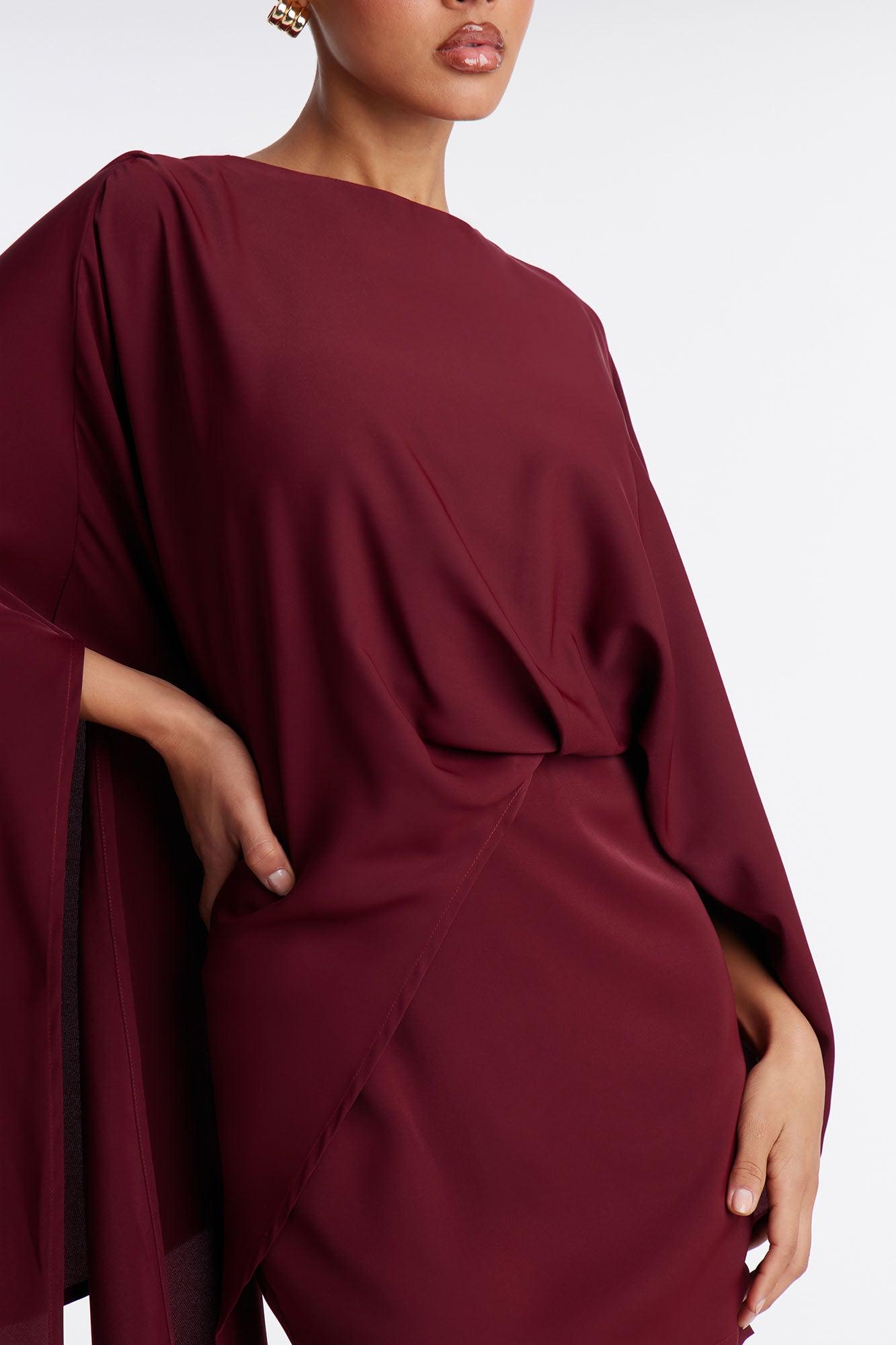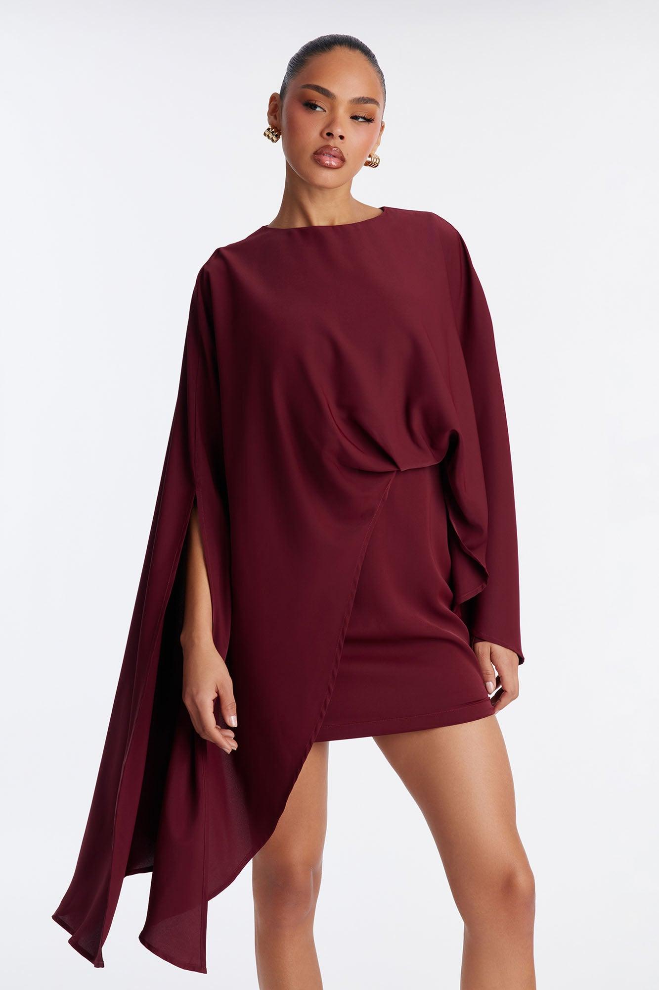 Charlotte Cape Crepe Woven Mini Dress - Burgundy Female