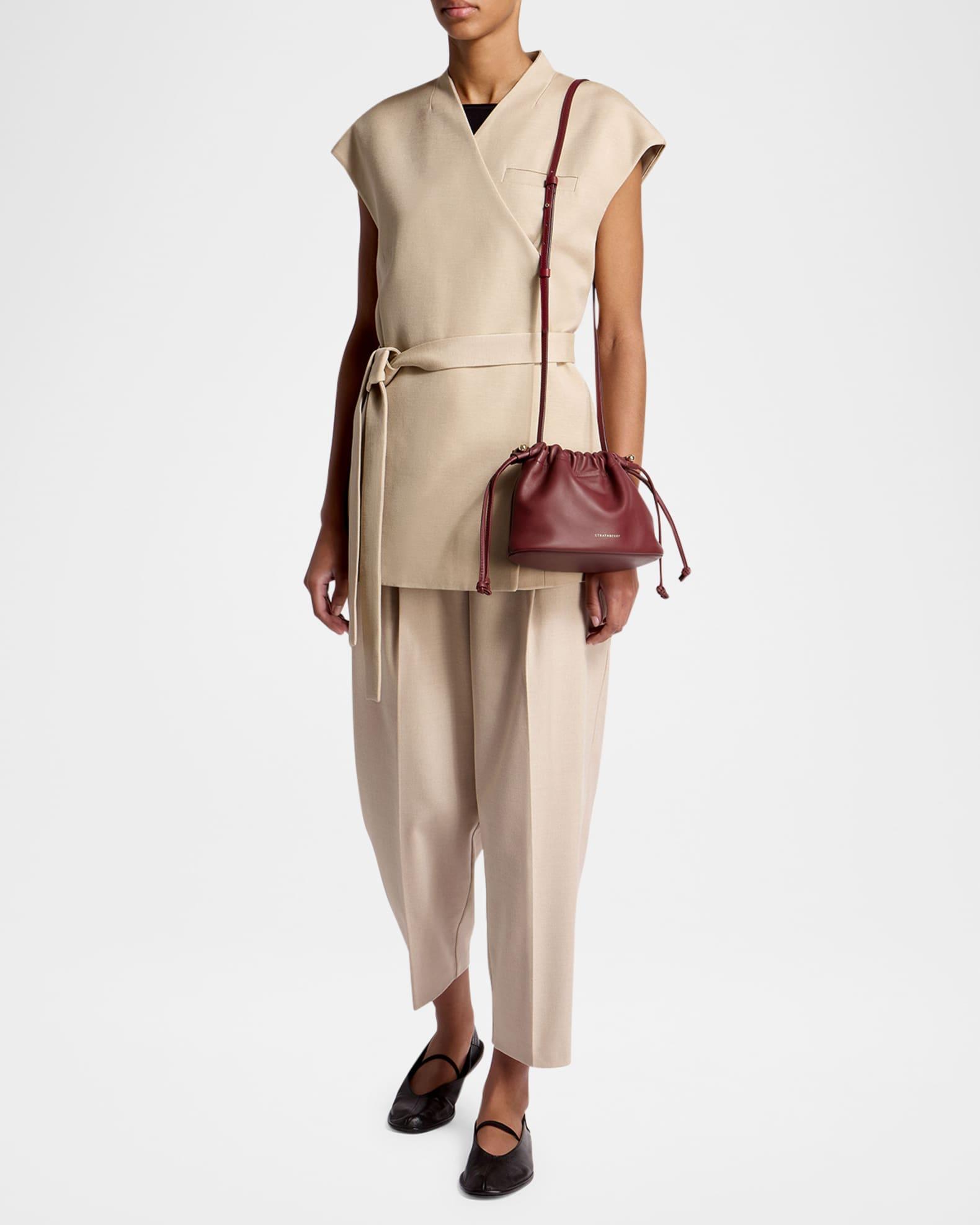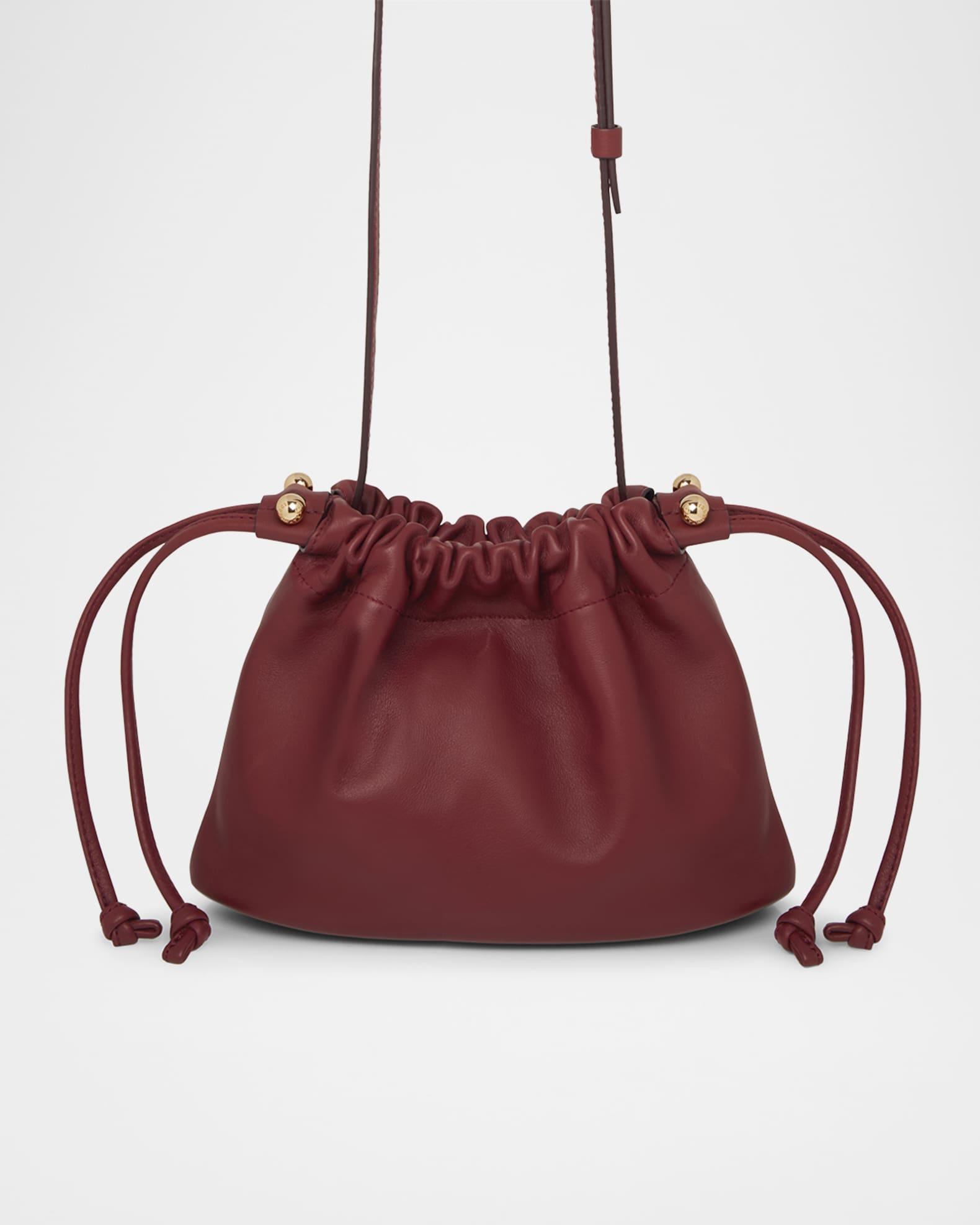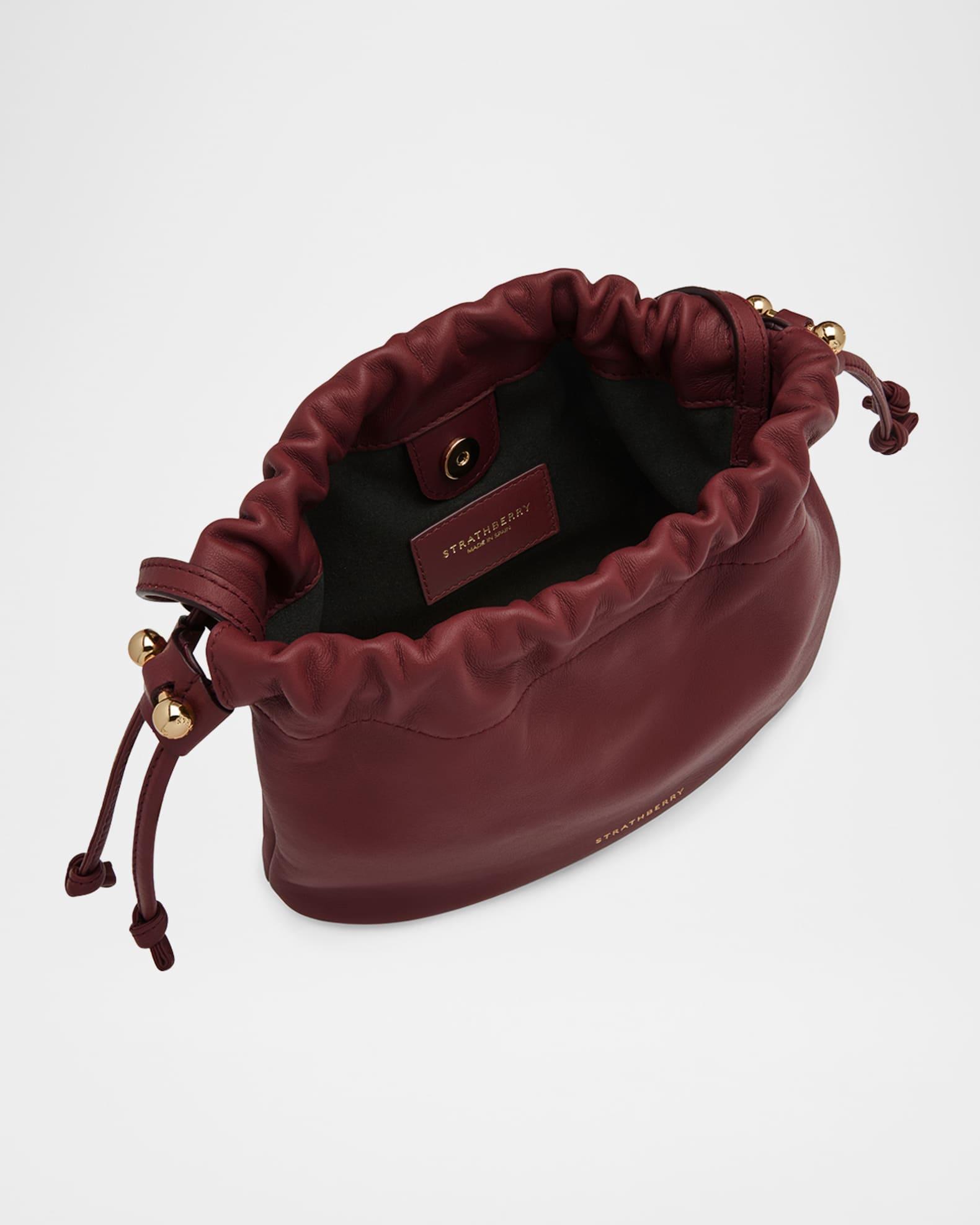 STRATHBERRY "Charlotte" handcrafted crossbody bag in soft Nappa leather, accented with signature metal music bars Detachable, adjustable crossbody strap Can be worn as a clutch or crossbody bag Open top with magnetic and drawstring closures Lining: Nylon/polyurethane Approx. 6.1"H x 9.1"W x 3.9"D Item Weight (Lbs.): 0.5 Made in Spain