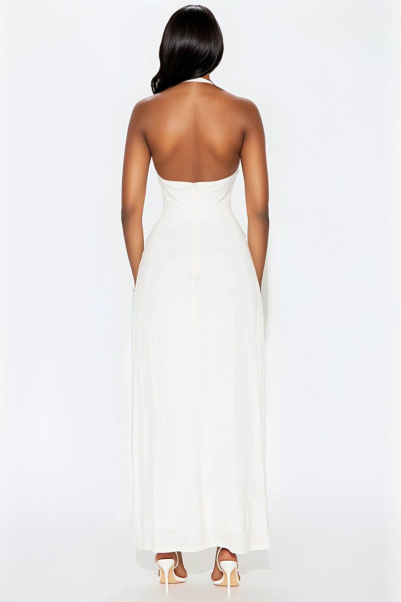 Charlotte Halter Plunge Maxi Dress - White