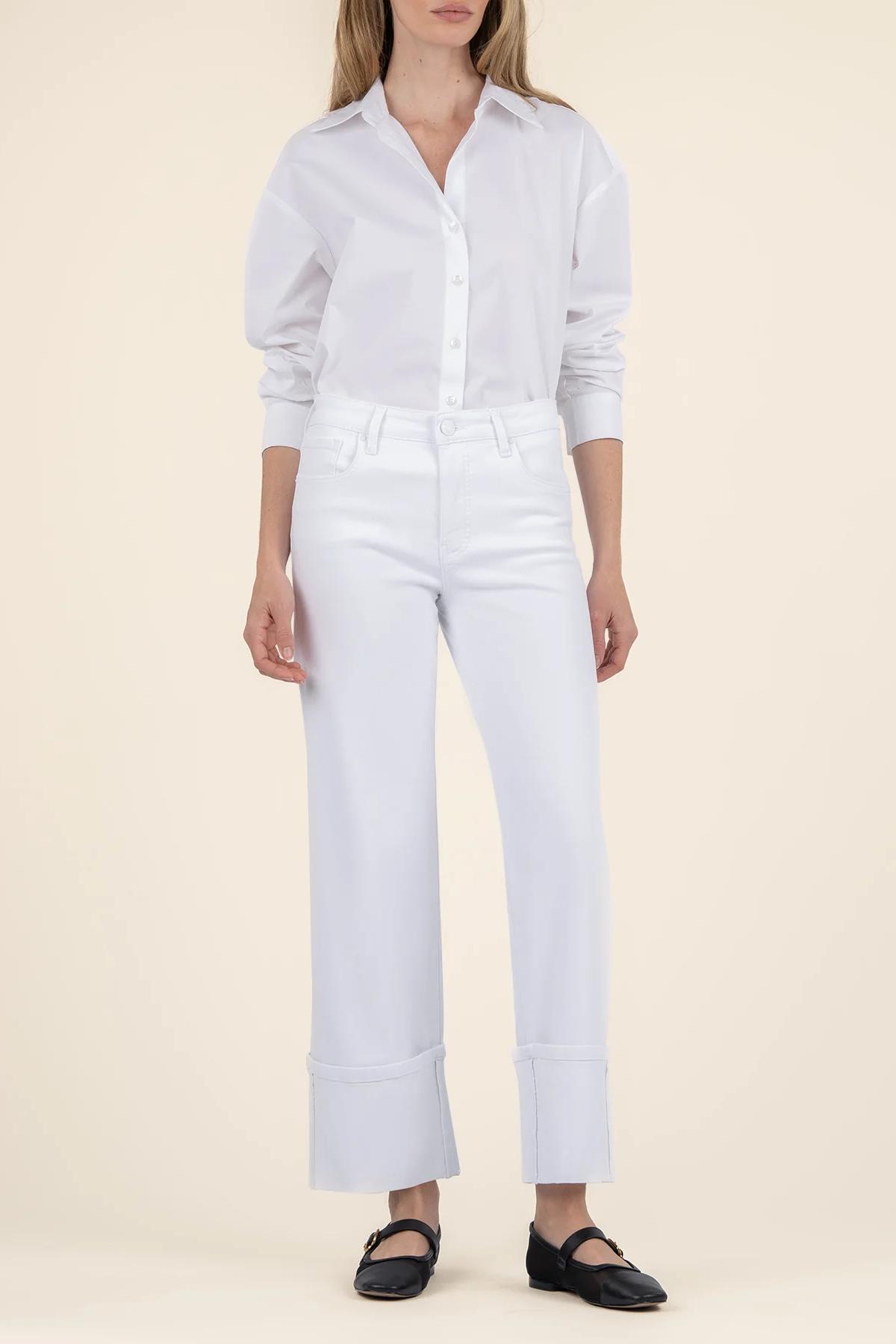With a flattering high-rise fit and wide-leg silhouette, these Fab Ab jeans feature a stylish roll-up detail for a relaxed, chic look. Perfect for adding comfort and effortless style to your wardrobe.