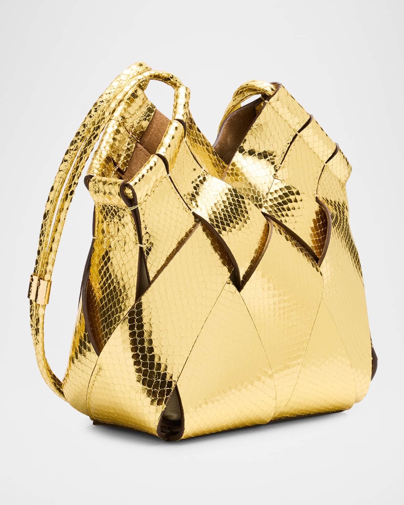 Ulla Johnson "Charlotte" crossbody bag in metallic snake-printed woven leather Adjustable crossbody strap Open top Lining: Suede Approx. 8"H x 8.8"W x 4.8"D Made in Italy