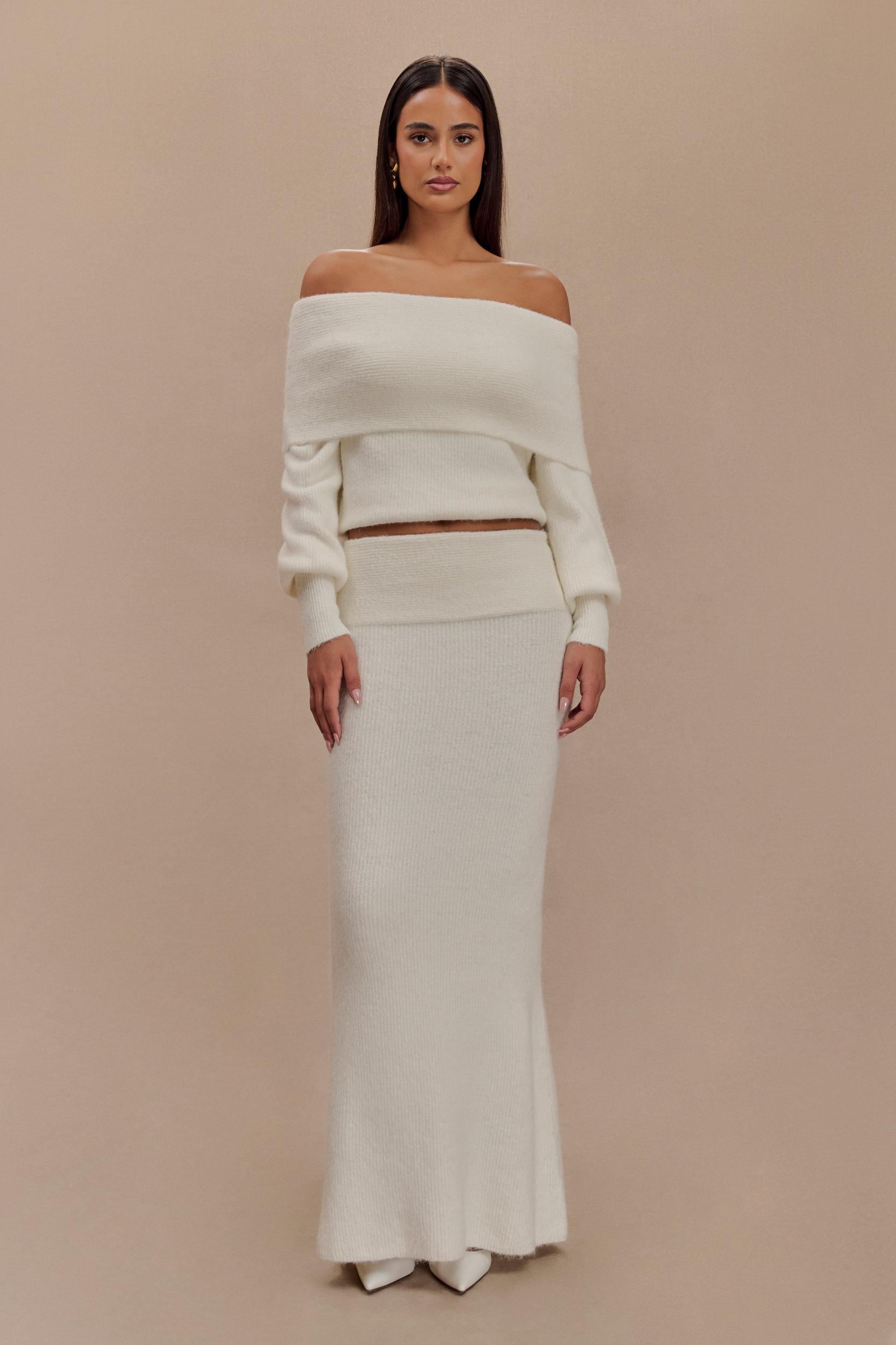 Chic & versatile. The CHARLOTTE Off Shoulder Knit Long Sleeve Top combines effortless style with a relaxed, sophisticated fit. Featuring a Bardot neckline and an overlay at the neckline, this top highlights its off-the-shoulder design with grace. The blouson sleeves add a touch of romantic flair, while the longline length provides a flattering silhouette. Crafted from unlined knit, the Charlotte Top offers comfort and versatility. Pair it with the Charlotte Off Shoulder Knit Long Sleeve Top for a coordinated, chic look that transitions seamlessly from day to night.