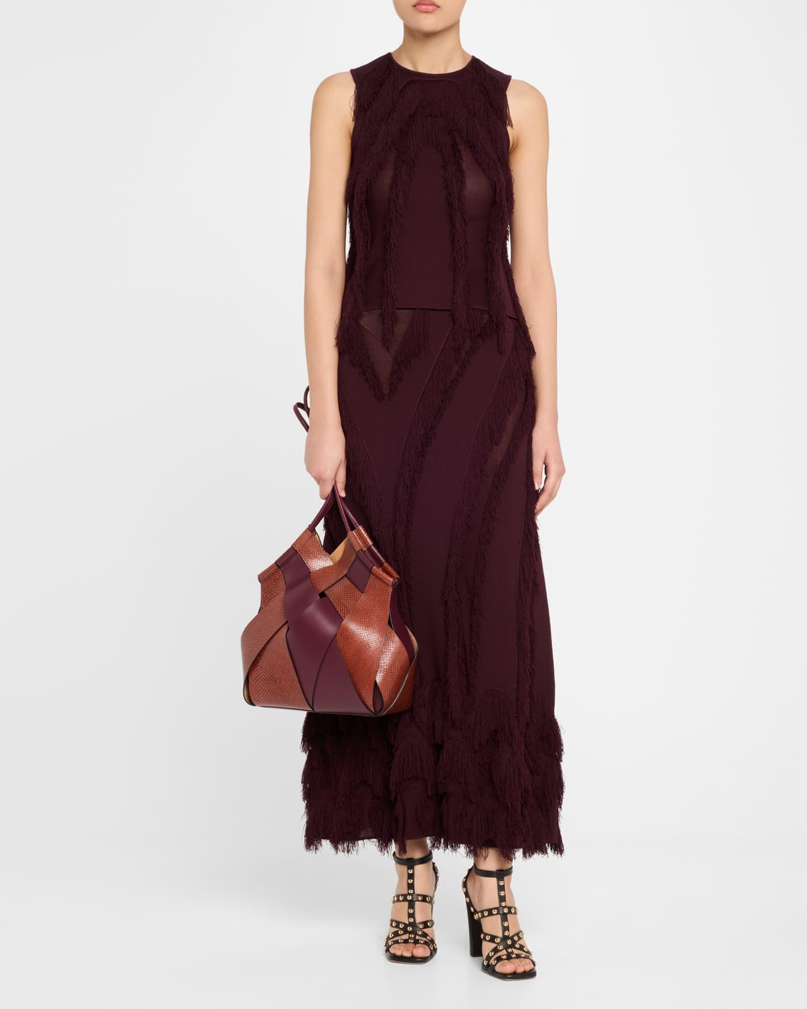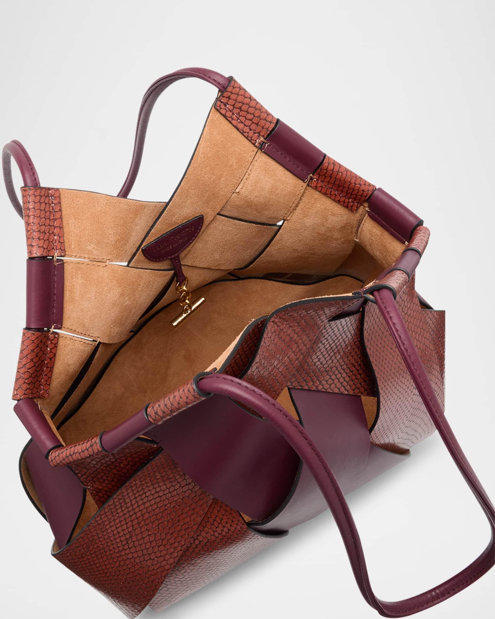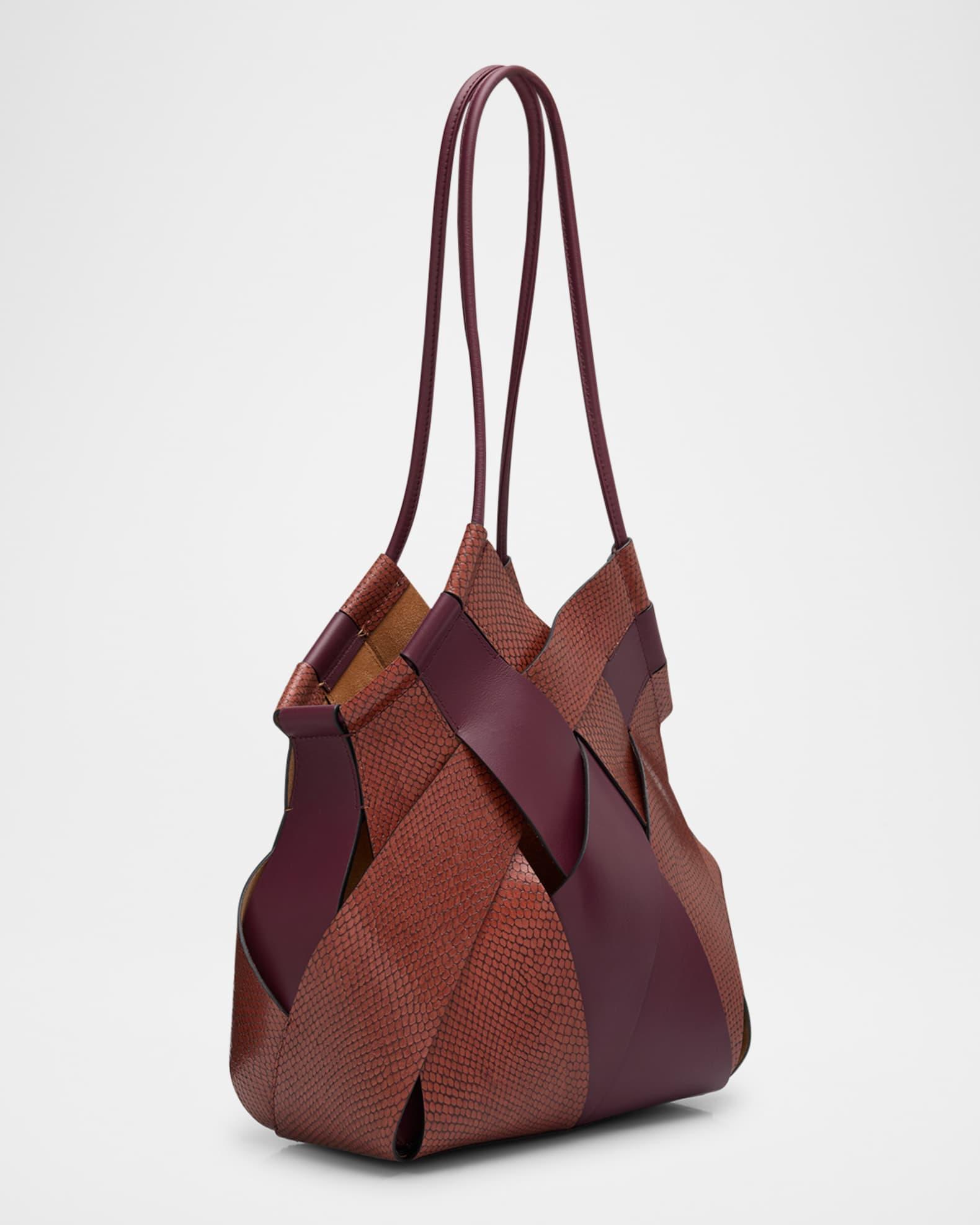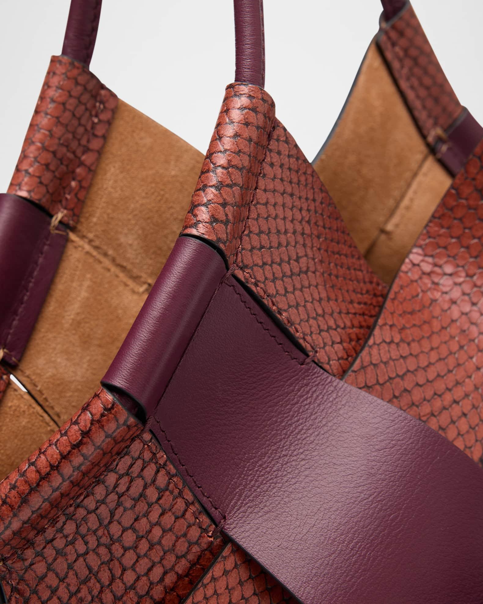 Ulla Johnson "Charlotte" tote bag in woven snake-print and smooth leather Each leather panel is individually crafted and carefully shaped into a distinctive silhouette. Shoulder straps Open top with chain toggle closure Lining: Suede Approx. 12.5"H x 13.8"W x 6.8"D Made in Italy