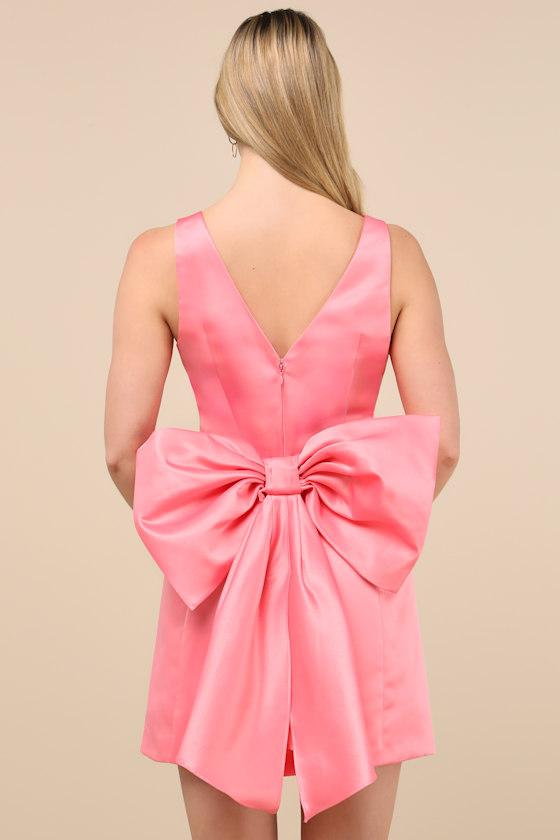 The Lulus Charming Celebration Pink Taffeta Bow Mini Dress has a whole lot of glamour that's sure to make you the talk of any social soiree this season! Sleek and structured woven taffeta shapes this iconic dress with wide straps that support a princess-seamed bodice and a V-neck (and back). The fitted waist tops a figure-skimming skirt that falls to a flirty mini hem. Turn around to reveal an eye-catching oversized bow detail that secures via snap closures for easy on-and-off! Hidden back zipper/clasp.