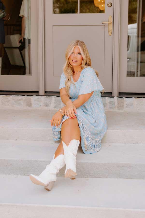 – Welcome warm weather effortlessly with our gorgeous dress – Lightweight, unlined rayon patterned in a dainty floral and paisley print – V-cut neckline – Short flutter sleeves – Fitted smocked bodice – Two hidden side pockets – Breezy skirt silhouette that falls into a straight ruffled hemline