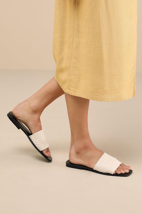 Sweeten up your sunny day 'fits with the addition of the Lulus Charra Cream Raffia Woven Flat Slide Sandals! These must-have summer sandals have a woven raffia construction that shapes a wide vamp strap atop a trendy square footbed. The simple, slide-on design allows for effortlessly cute styling on the daily! Available in whole sizes only.