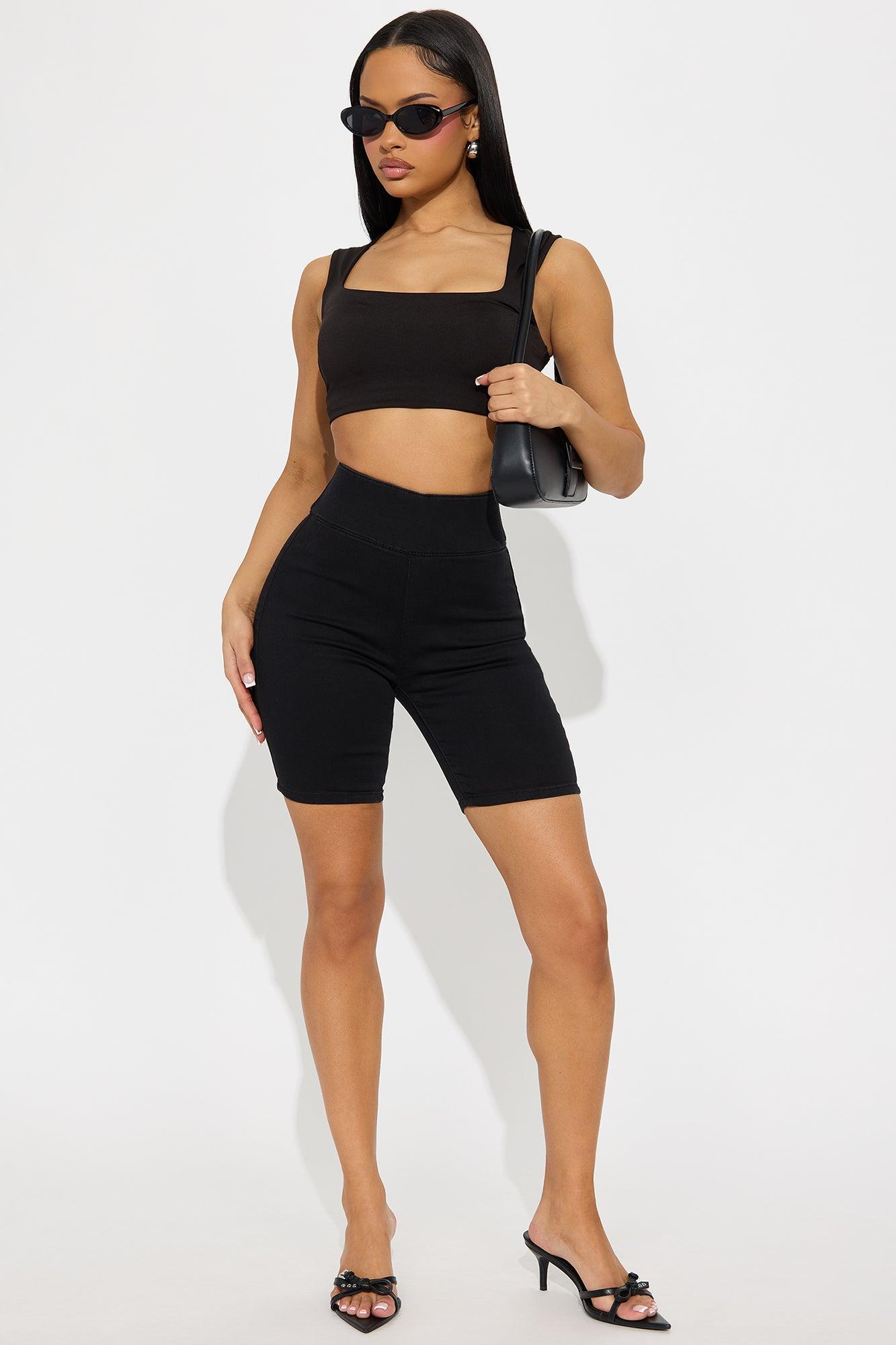 Chase The Vibe High Rise Denim Biker Shorts - Black