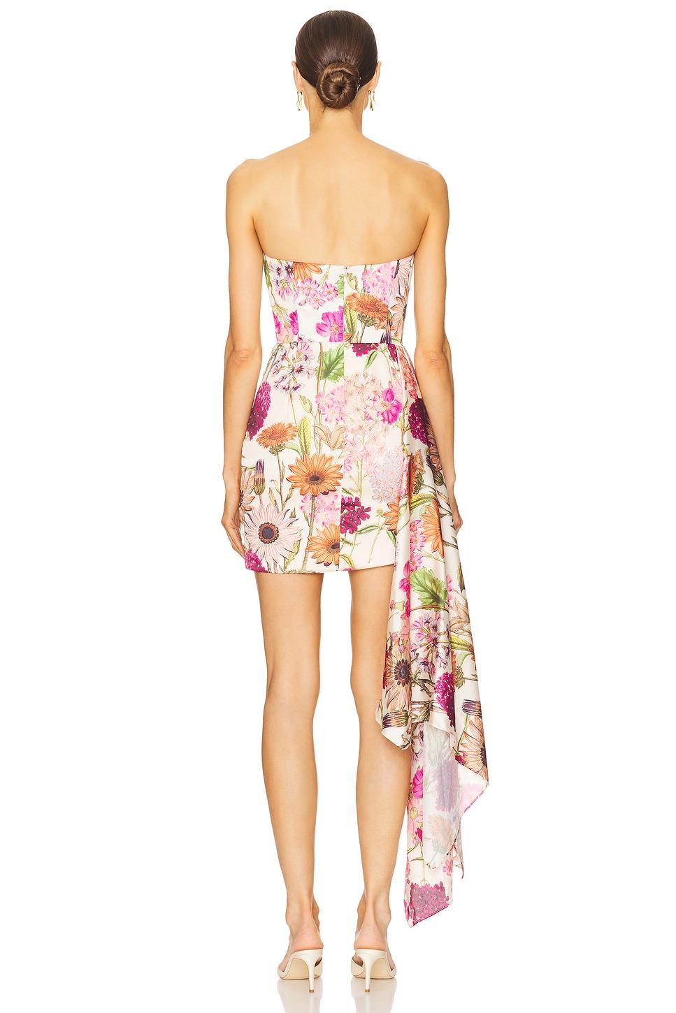 100% poly. Made in USA. Dry clean only. Double lined. Hidden back zipper closure. Charmeuse fabric with boned bodice, ruched skirt and draped accent. Model 1 is wearing size SModel 2 is wearing size L. Neckline to hem measures approx 23" in length. Revolve Style No. KATR-WD193, KATR-WD355. Manufacturer Style No. GWBH0271.