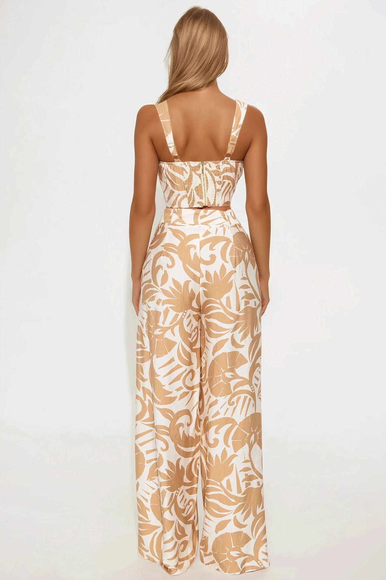 Chasing Sunsets Linen Pant Set - Taupe/combo