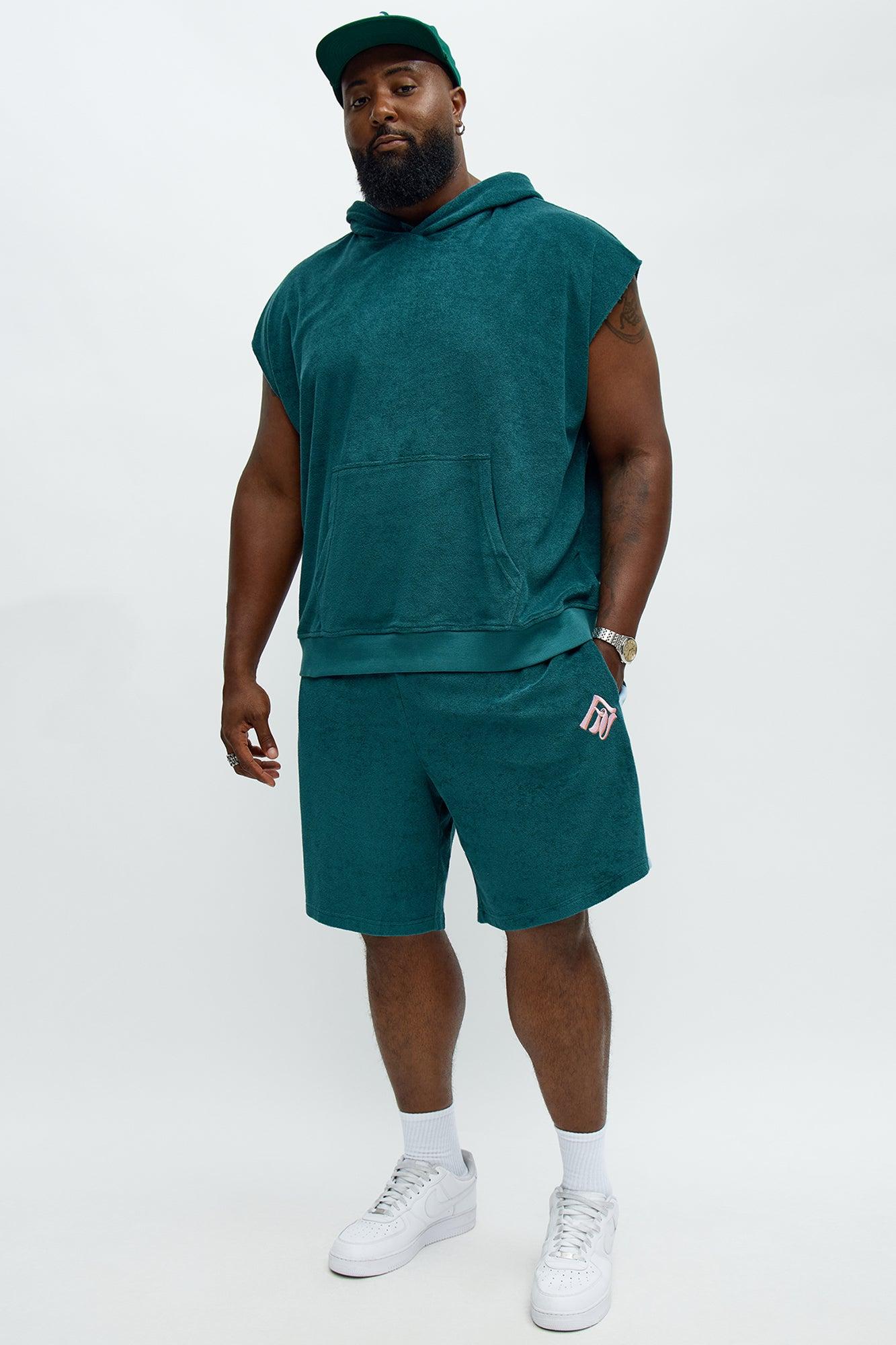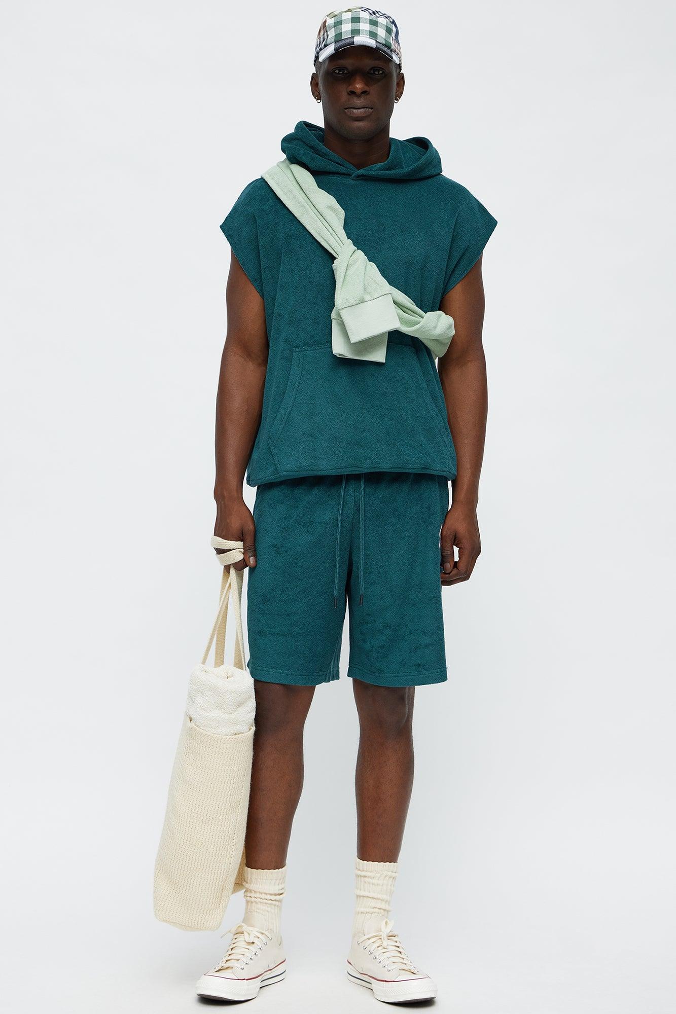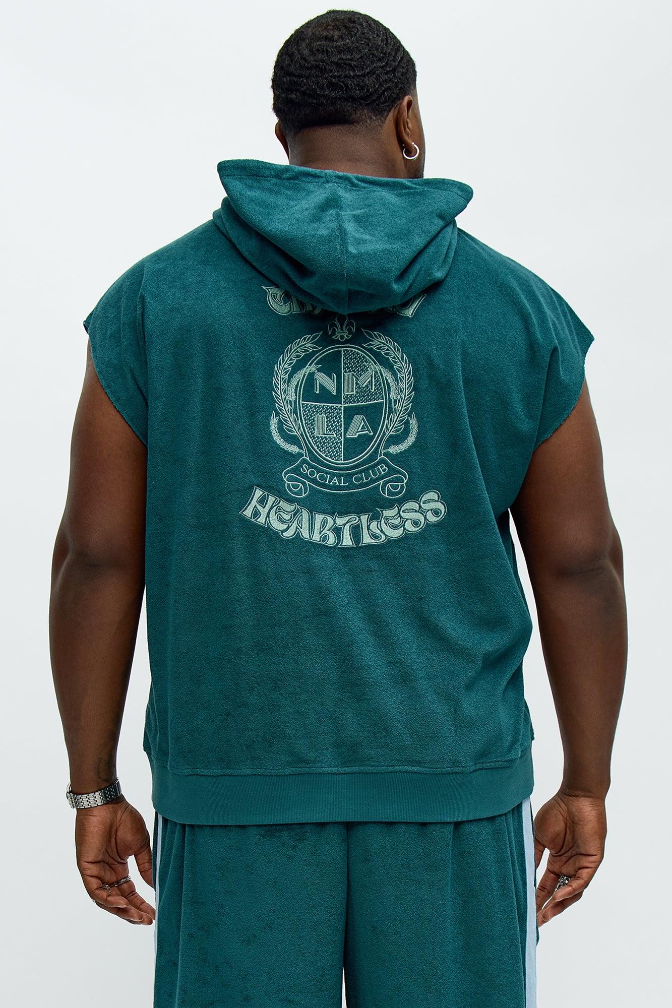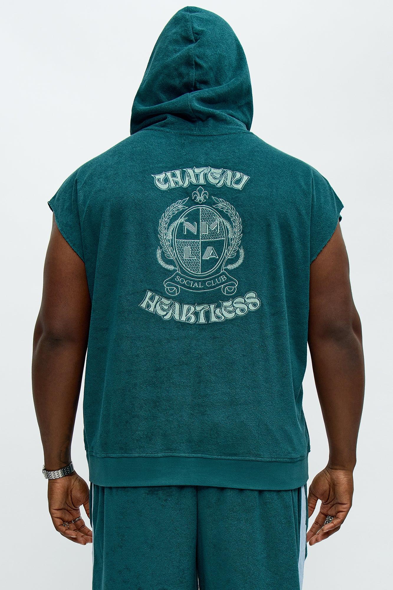 Chateau Terry Embroidered Sleeveless Hoodie - Teal Male