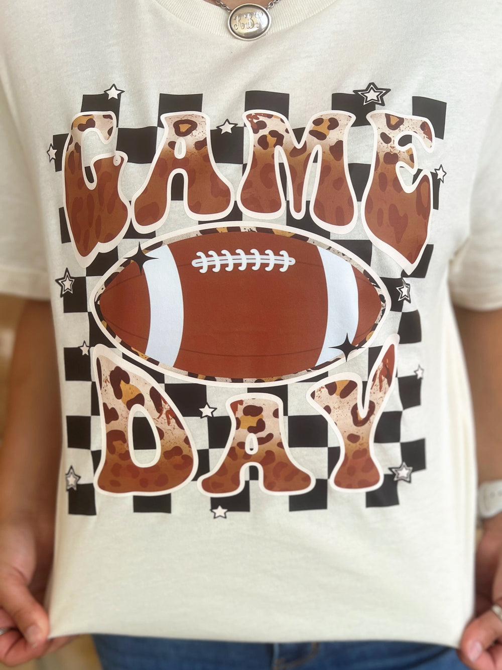 Our Check Out My Game Day Tee is the ultimate addition to your game day wardrobe! With its natural color crew neck design, checkered print, and groovy vibes,...