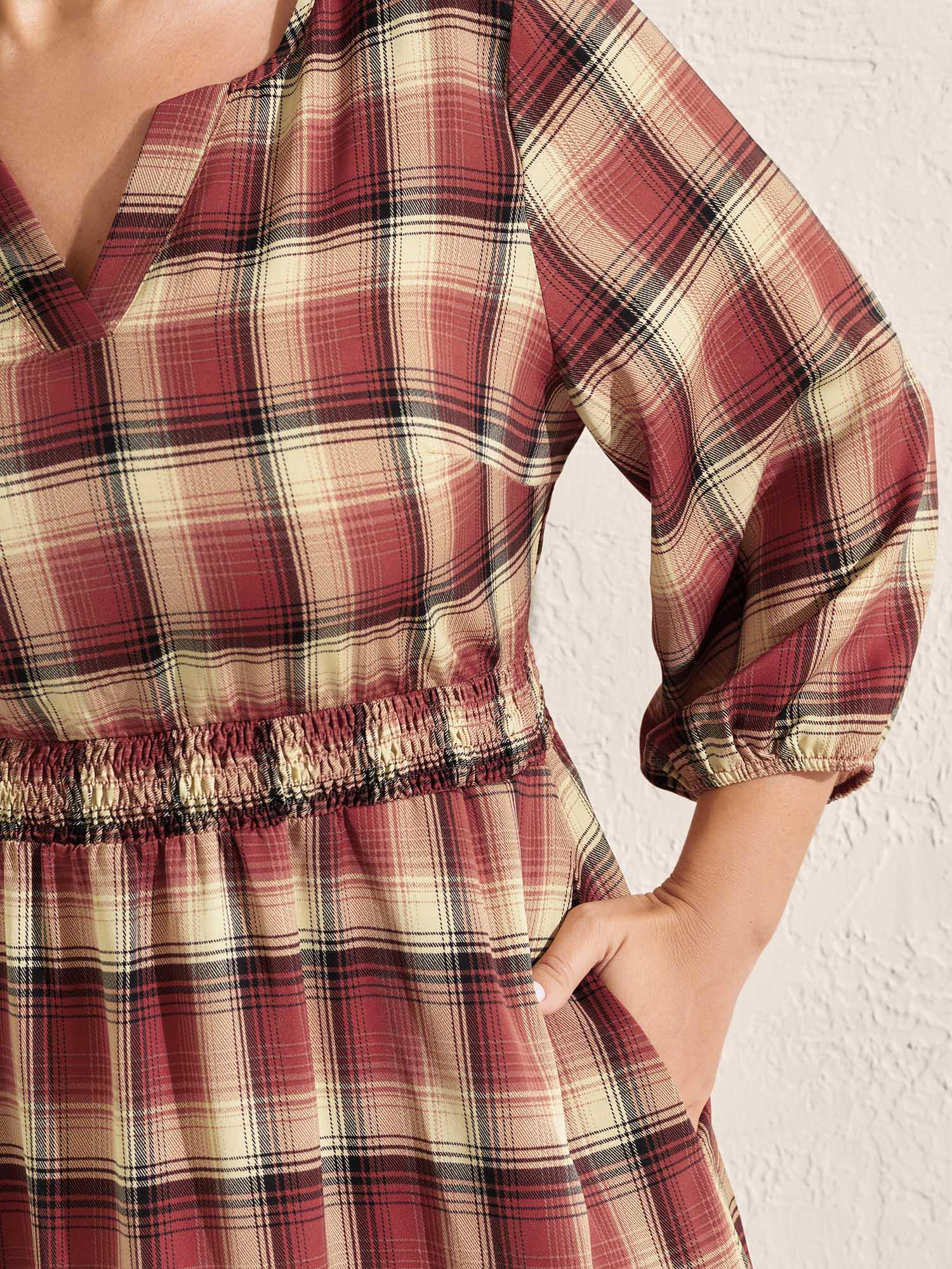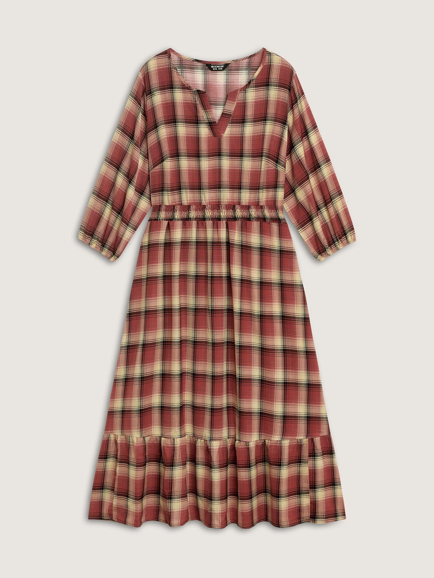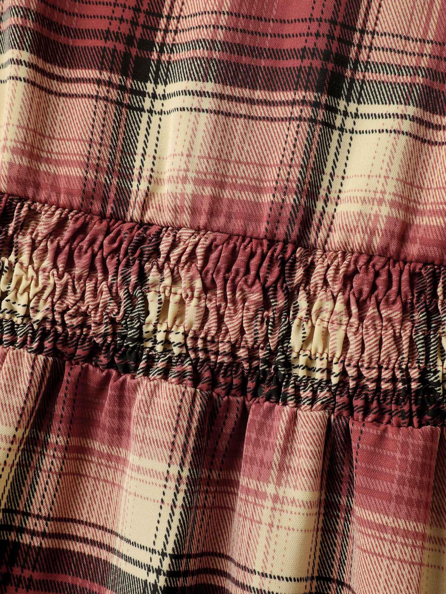 Check Print Shirred Waist Tiered Maxi Dress Female