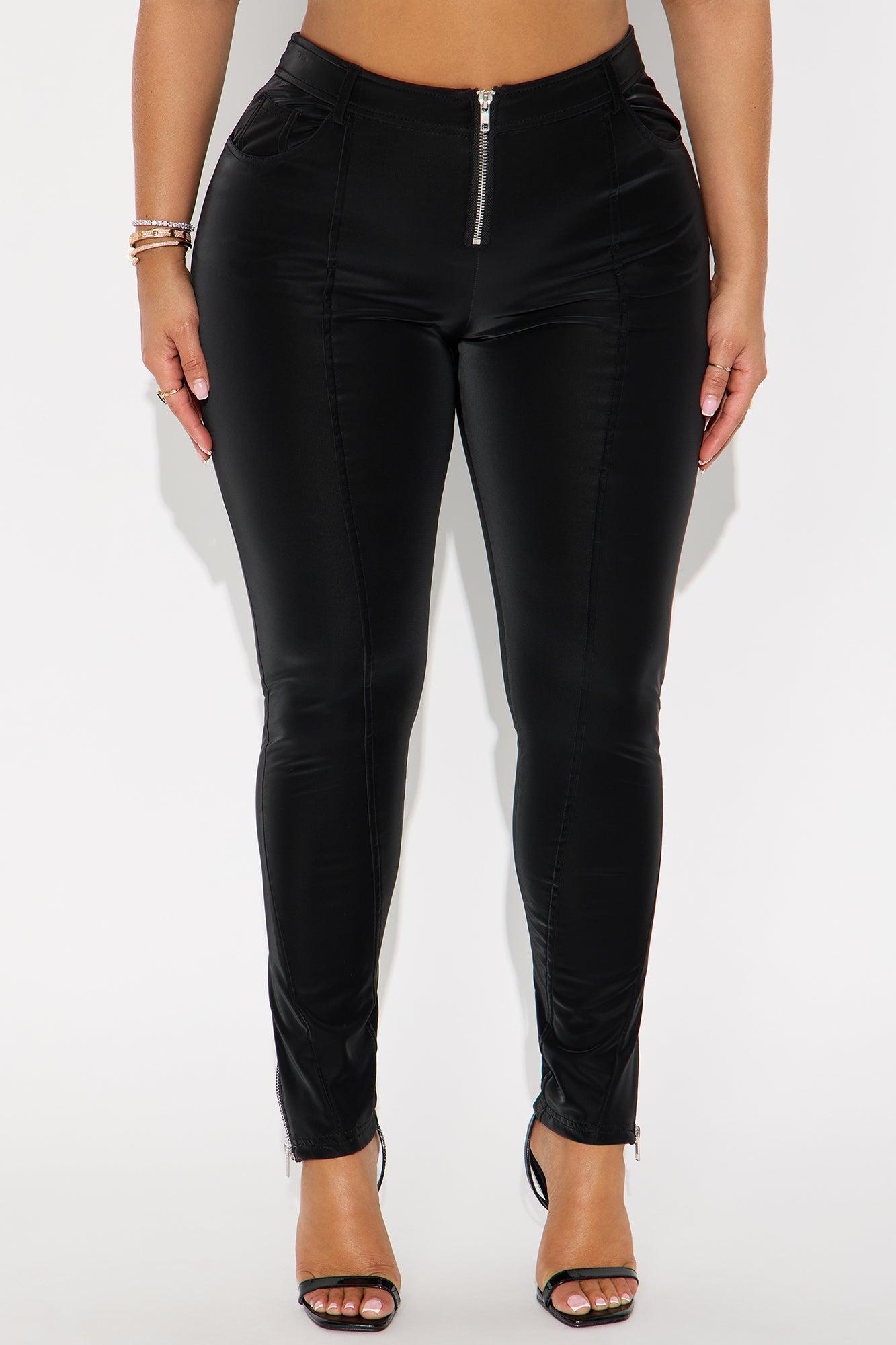 Available In Black. Skinny Pant Flat Waistband High Rise Stretch Twill 29" Inseam Zipper Detail Stretch Self Coating: 100% Polyurethane Self Backing: 96% Polyester 4% Spandex Lining: 100% Polyester Imported California Proposition 65WARNING: Cancer and Reproductive Harm - www.P65Warnings.ca.gov.