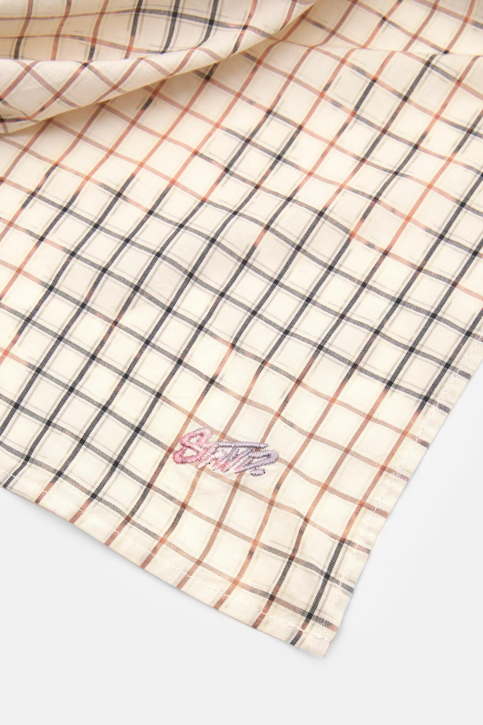 Bandanna scarf with a check design and embroidered STWD logo. Made of cotton.