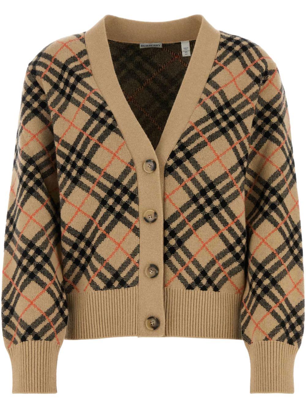 checked cashmere cardigan