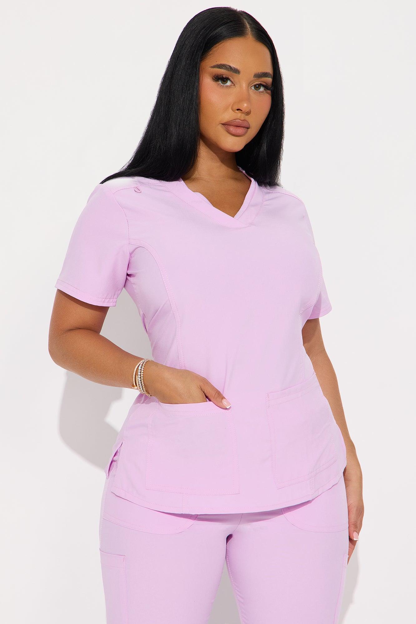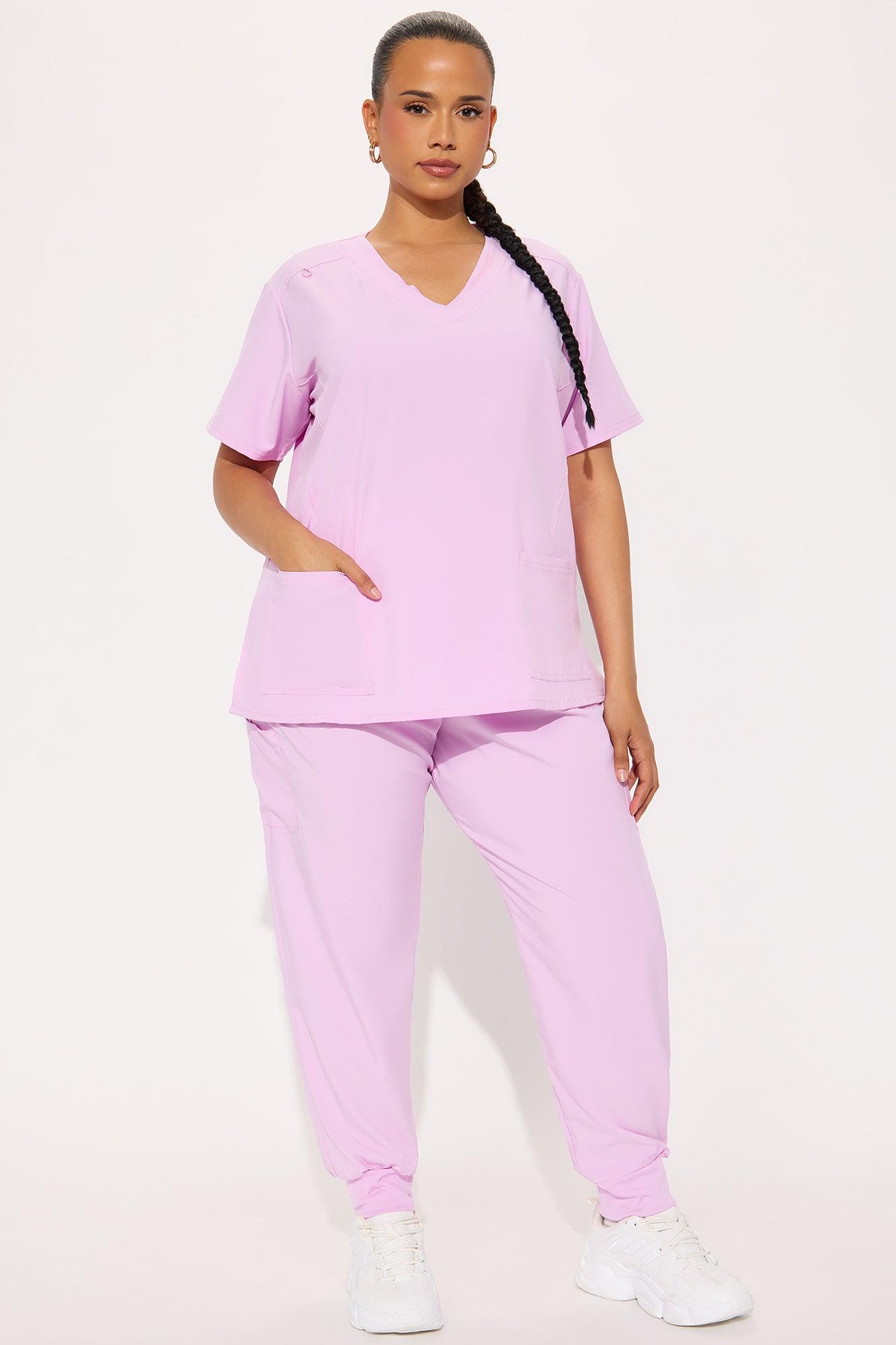 Available In Lilac, Magenta, And Chocolate. Uniform Scrub Set Short Sleeve Top V Neck Ribbed Back Panel Detail Front Pocket Detail Drawstring Waistband Side Pockets Stretch 93% Polyester 7% Spandex Imported California Proposition 65WARNING: Cancer and Reproductive Harm - www.P65Warnings.ca.gov.