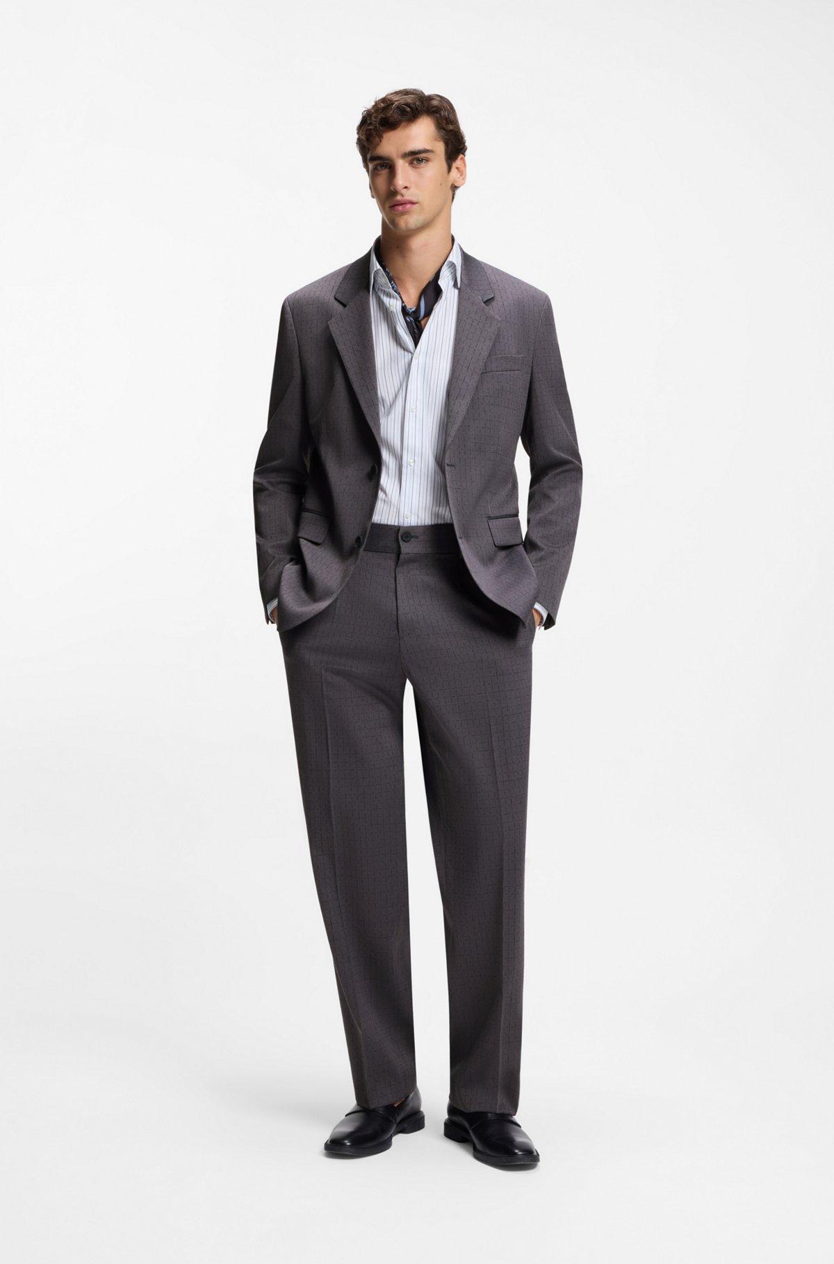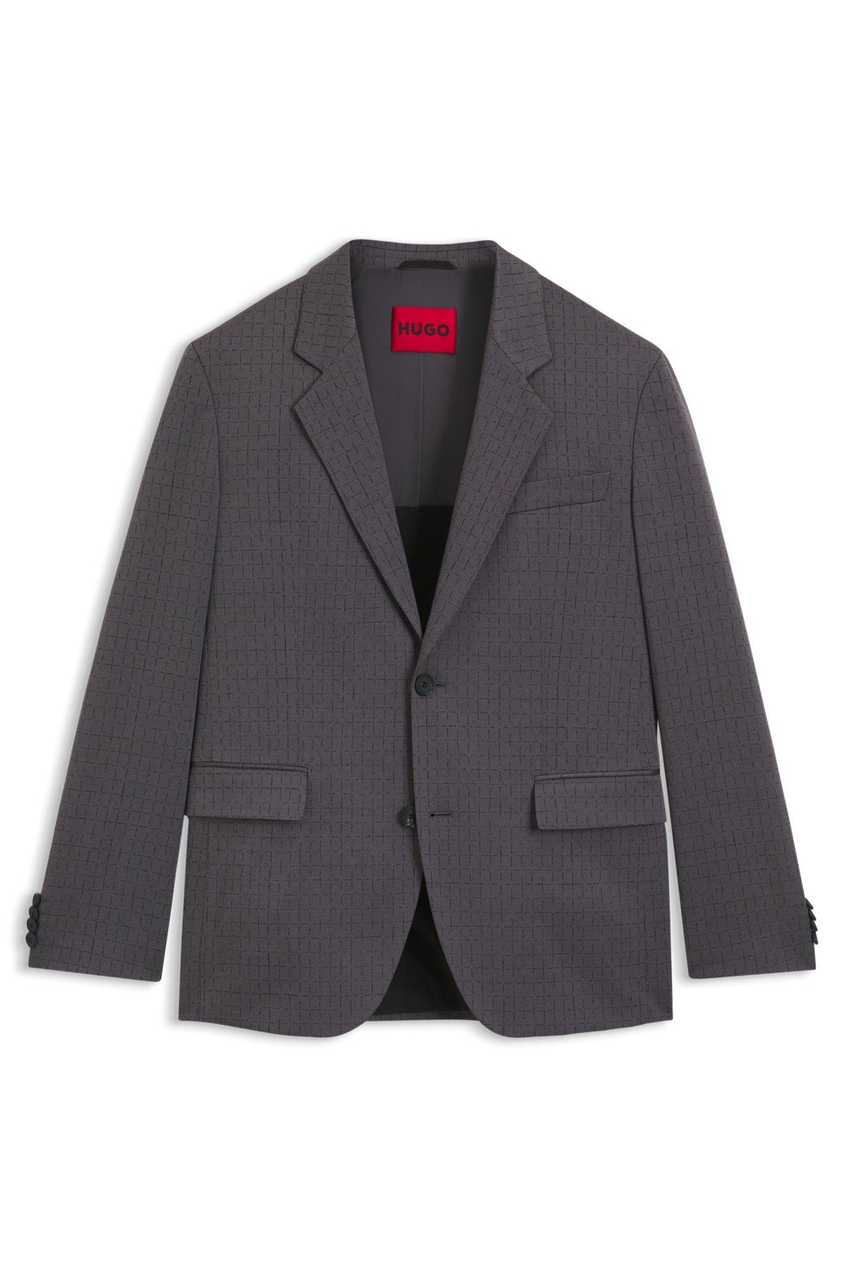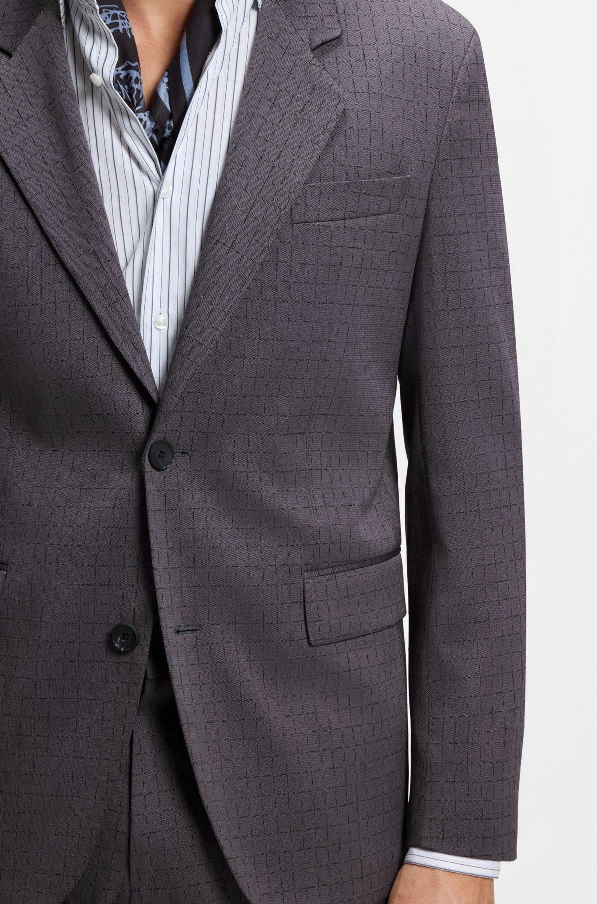 Cut in performance-stretch fabric with a pin check, this HUGO Menswear suit jacket is a contemporary option. Blended with virgin wool. Modern fit.