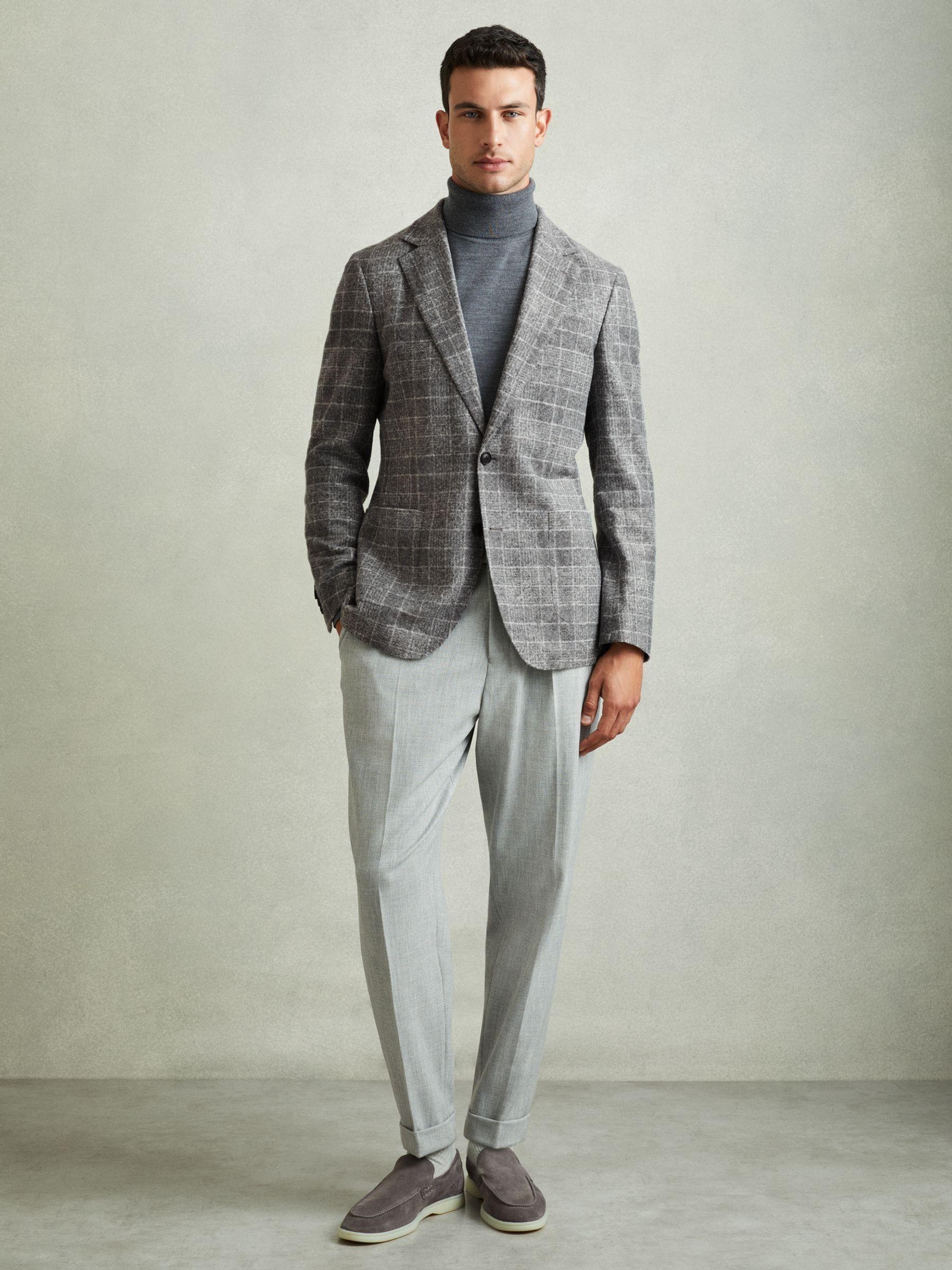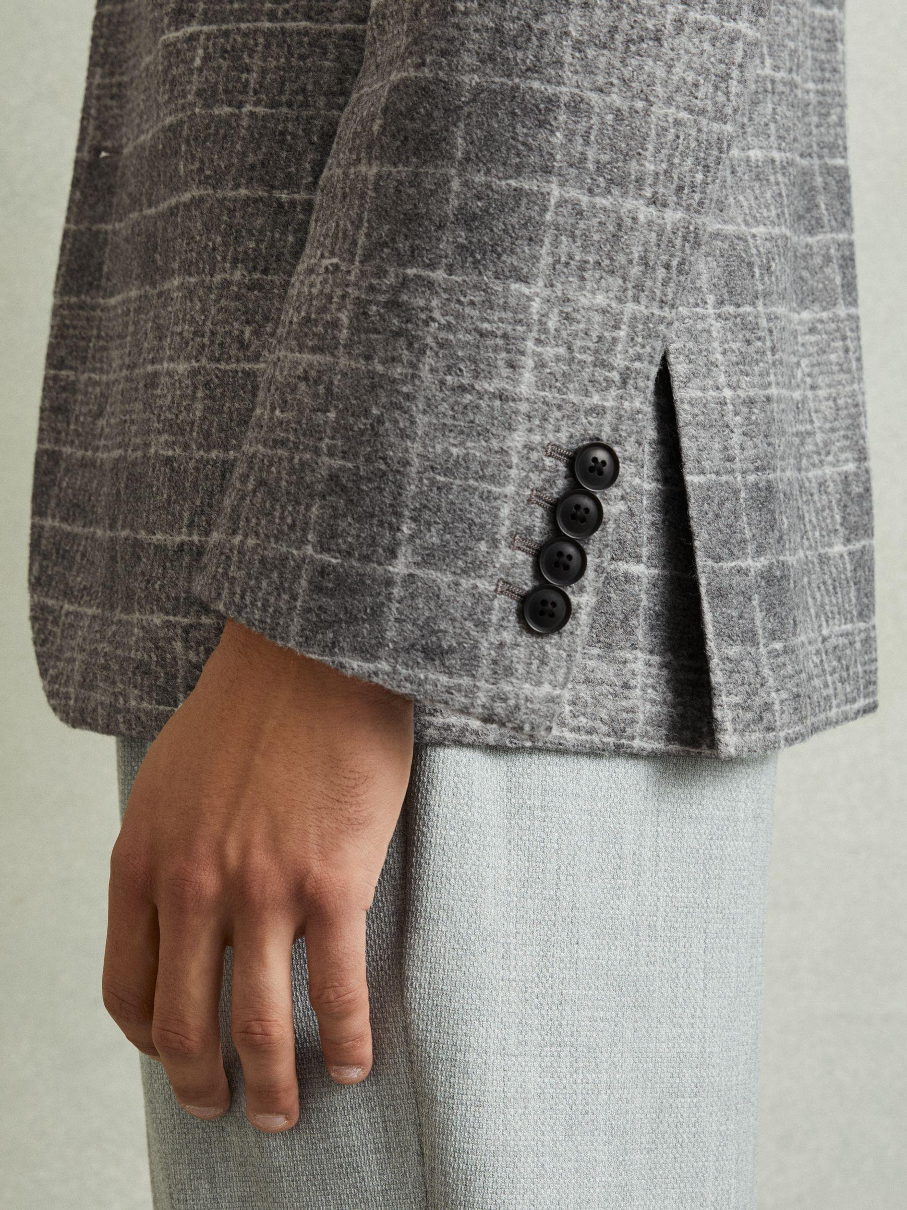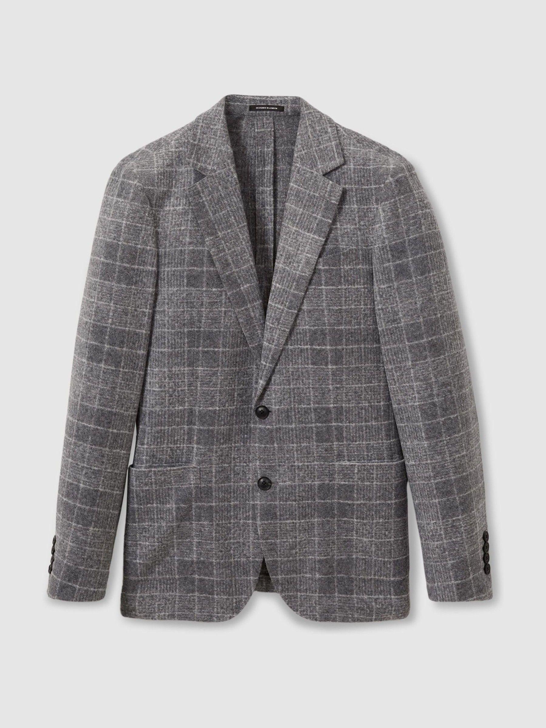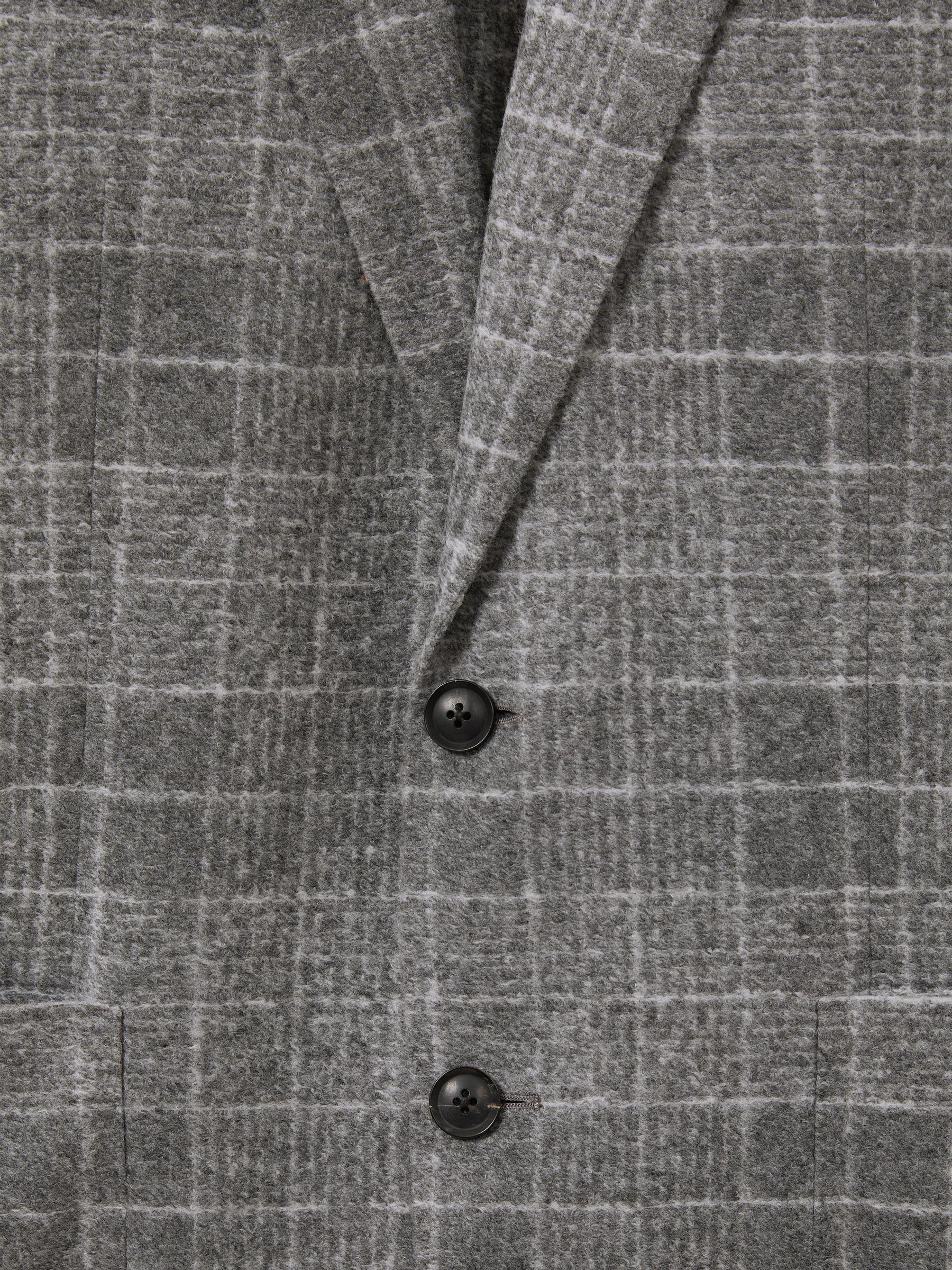 A brushed finish softens the magnified checks of the Feel blazer, heightening its relaxed aspect. Tailored without a lining or canvassing to complement the unstructured shoulder line, it’s patched with pockets and cut with curved quarters. Made with wool. Notch lapels. Unstructured shoulders. Patch pockets. Curved quarters. Dual back vents. SIngle-breasted buttons.