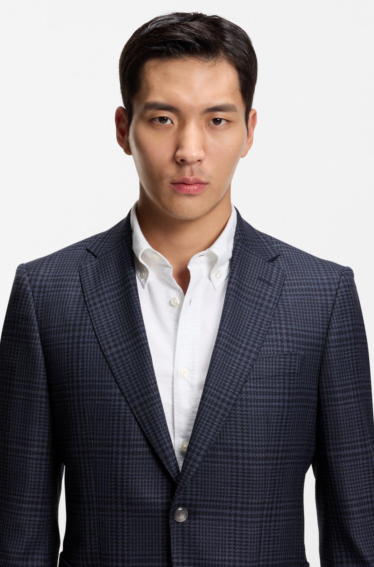In a slim fit with constructed shoulders, this BOSS Menswear jacket creates a modern profile. Virgin wool with a classic check.