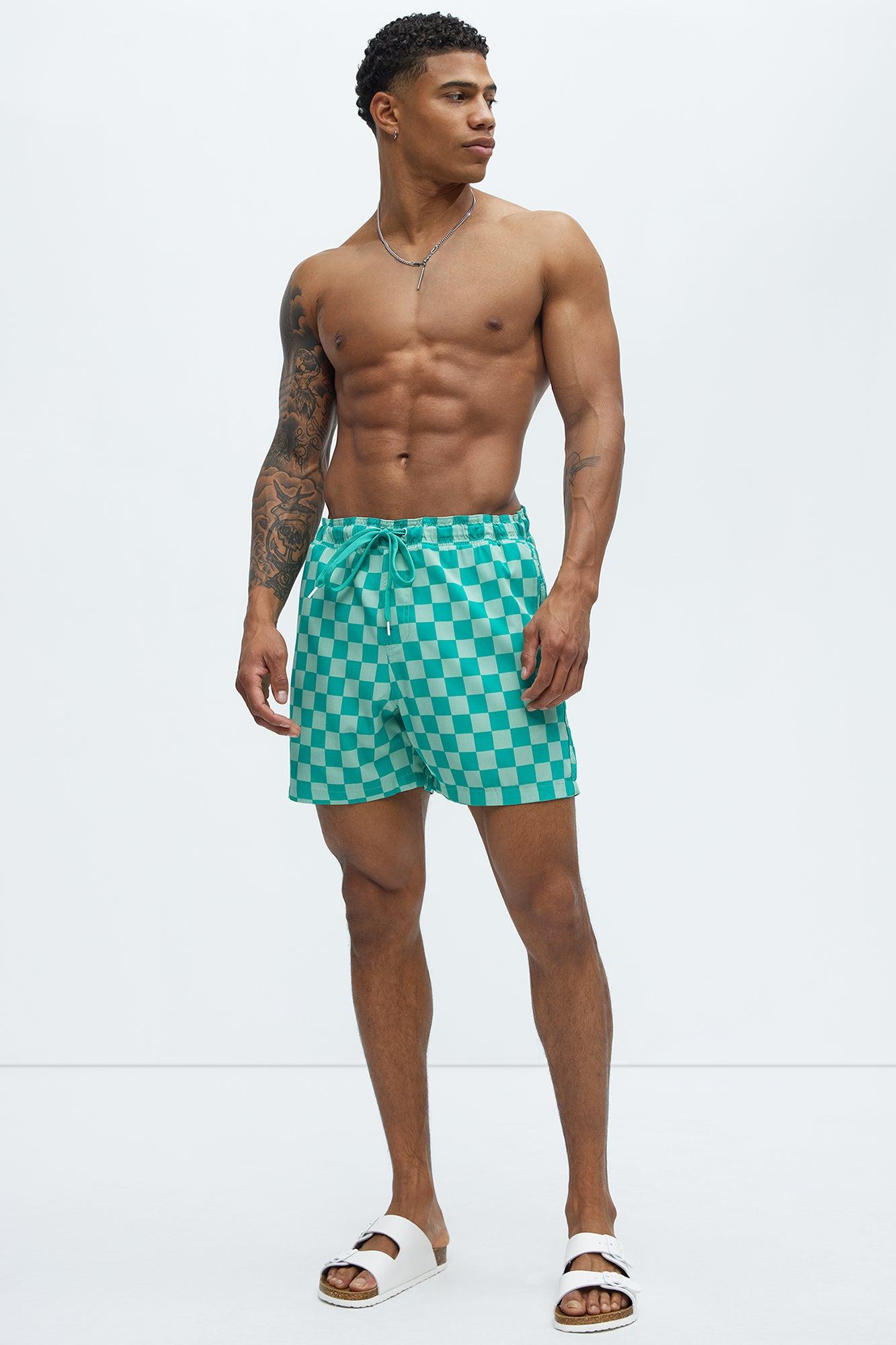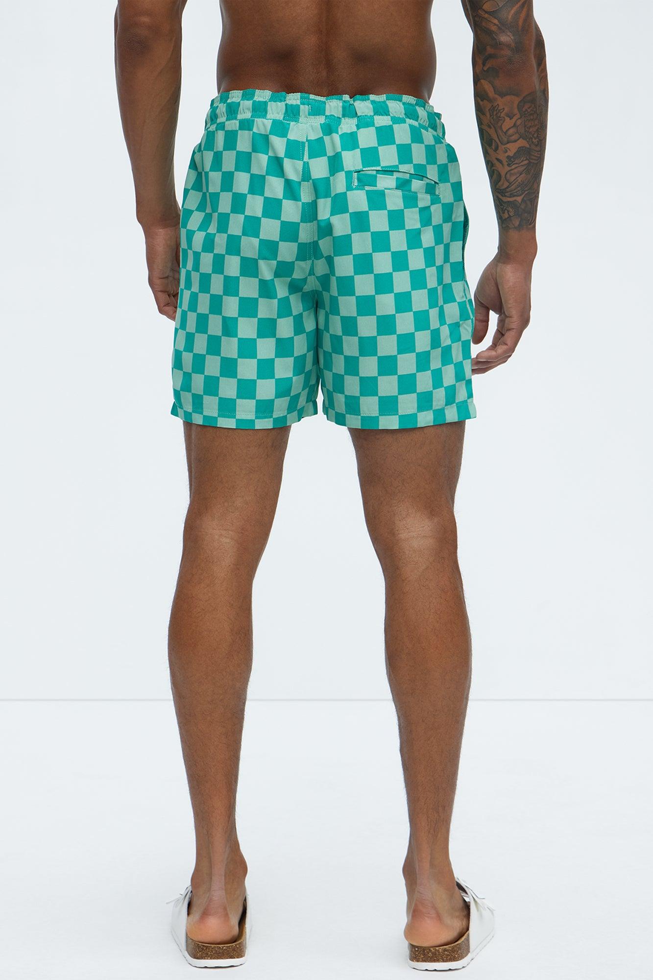 Checkered Paradise Swim Mid Trunk - Teal