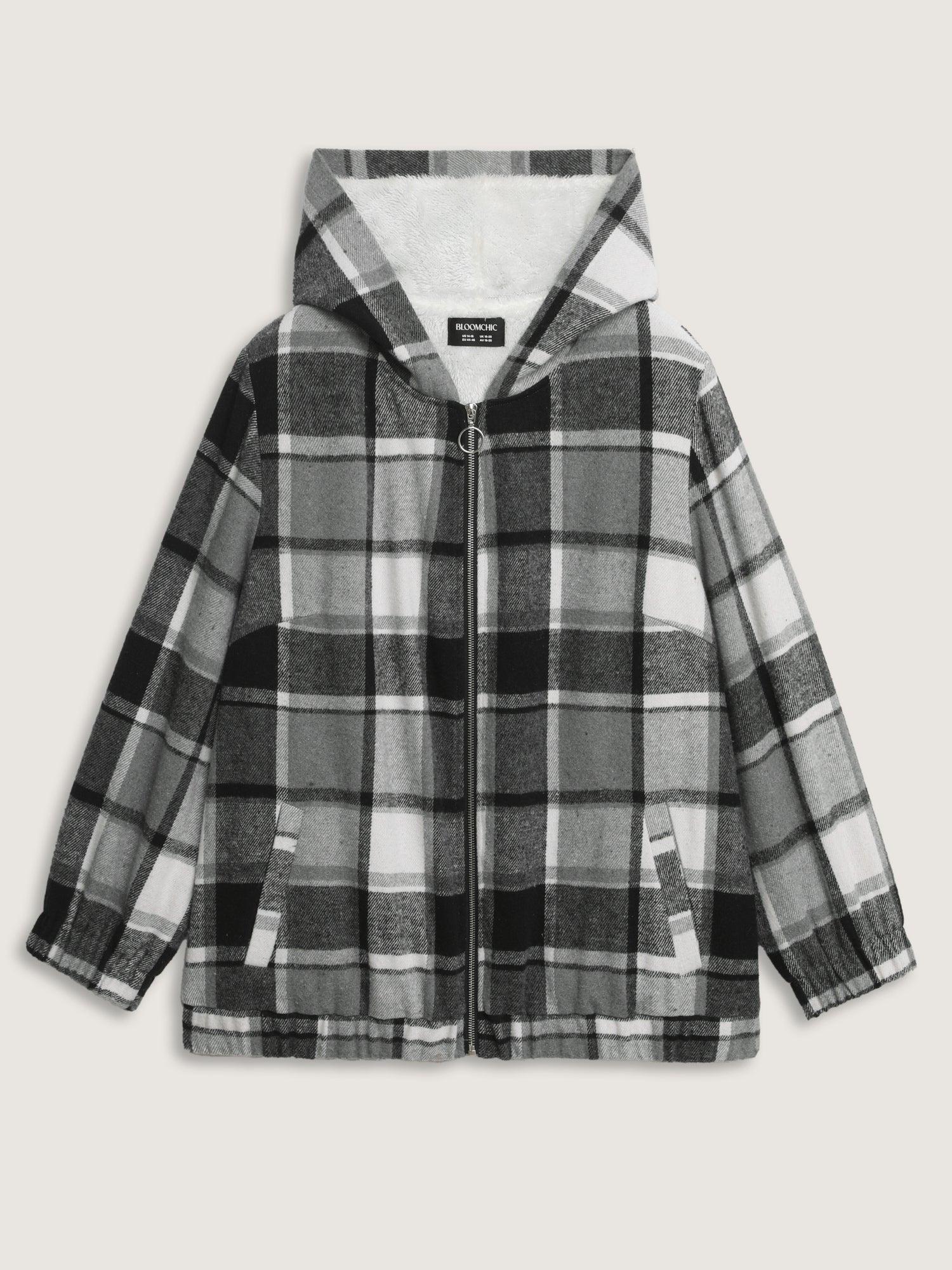 Shop Checkered Pattern Lined Faux Fur Zipper Hoodie now and redefine your style with confidence at BloomChic. Tailored for mid and plus-size women. This trendy Outerwear Women, sizes 10-30. Color:Black;Style:Leisure;Prints:Plaid;Pocket:Single-flap pocket;Belt:No-belt;Closure Type:Zipper;Lining:Lining