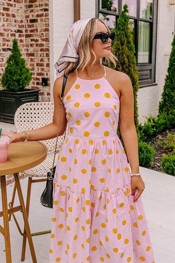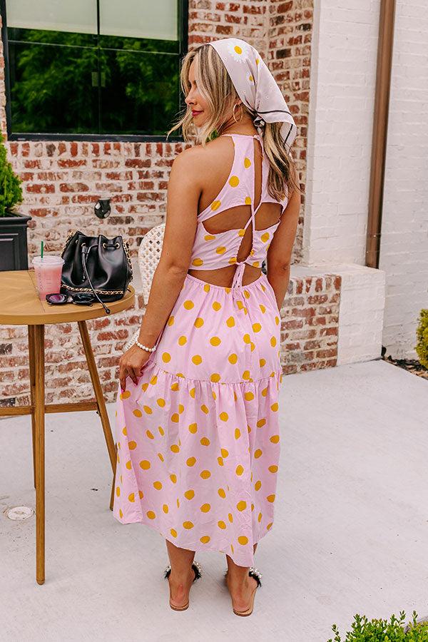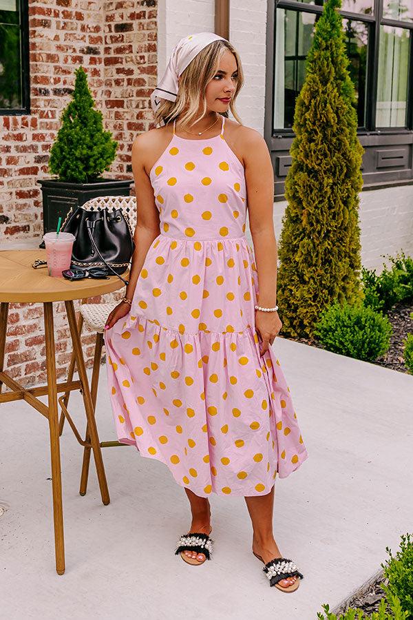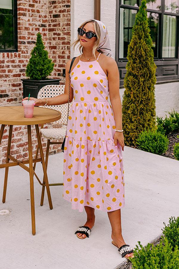Believe us when we say you'll want to be spotted in our charming light pink 'Cheek Kisses' midi dress featuring lightweight material patterned with cute orange polka dots, a high neckline with a sleeveless fit, a lace closure back, and a relaxed silhouette that falls into a straight mid-calf length hemline! Measurements S : Bust 30", Hip 38", Length 47", Waist 28". M : Bust 32", Hip 40", Length 48", Waist 30". L : Bust 34", Hip 42", Length 49", Waist 32".