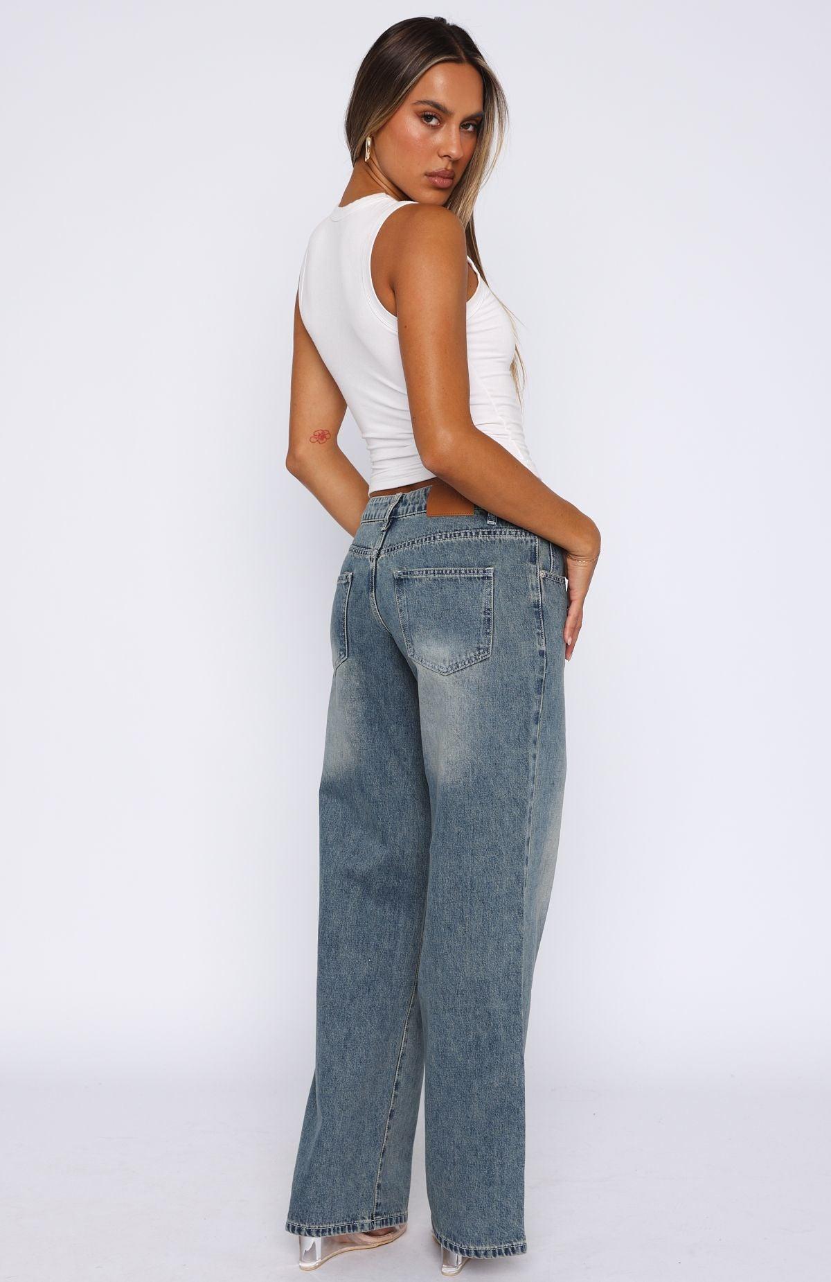 The Chelsea Low Rise Straight Leg Jeans Brown Blue Acid are a must have staple! Features low rise cut, straight leg, button and zipper closure, belt buckle holes and 5 pockets. Complete the look with a White fox tank and gold accessories for the perfect coffee date fit. 100% Cotton Mik is 171cm & wears a S Due to the nature of denim, washes will vary per individual garment. Colour fade/ transfer naturally occurs but will ease over time as the garment wears. We recommend washing your denim inside out, in cold water.