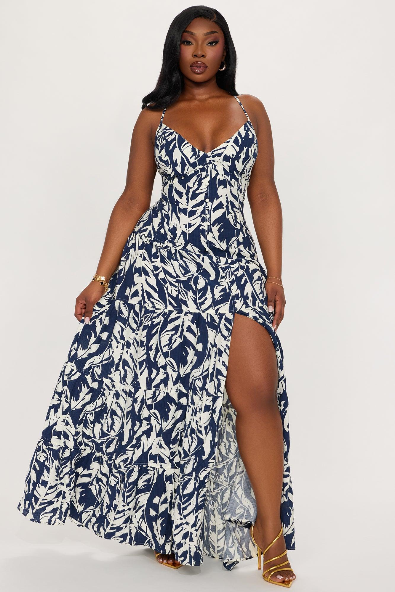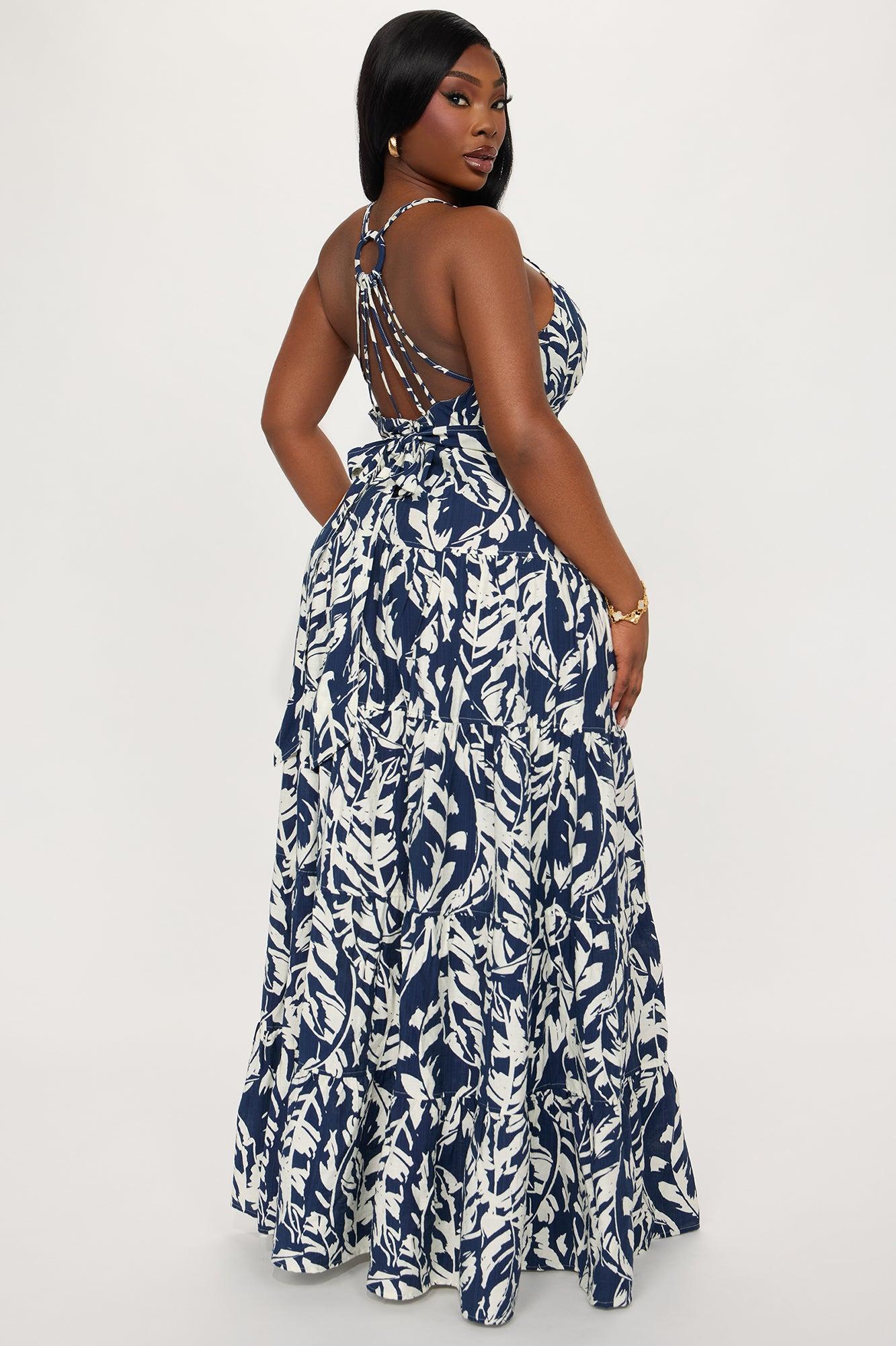 Chelsea Printed Linen Maxi Dress - Navy/combo