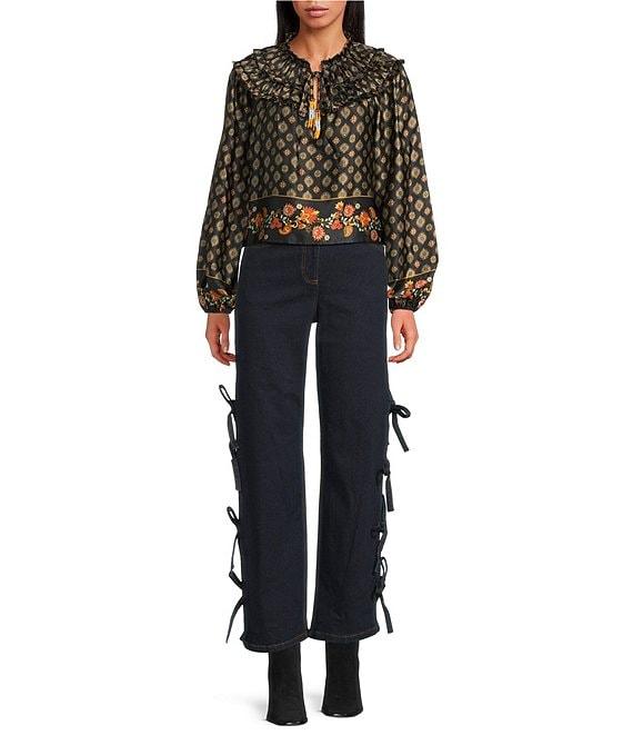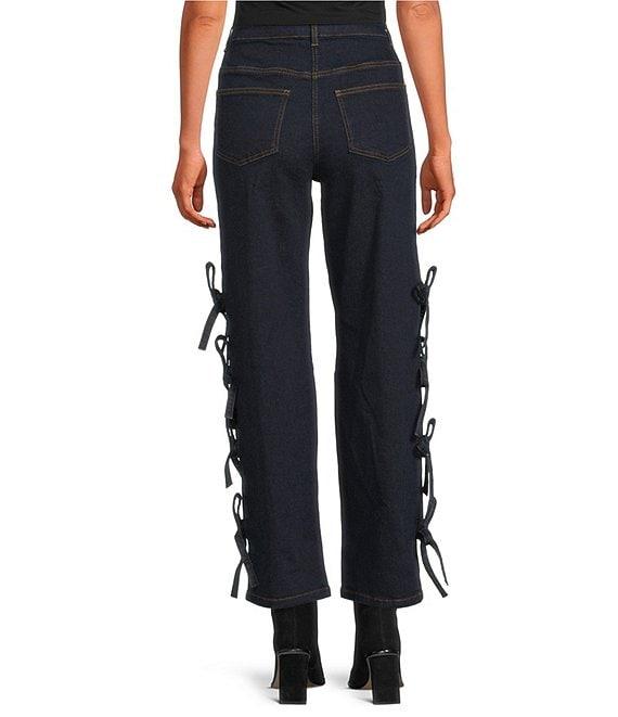 From Chelsea & Violet, this jean features: Denim Fabrication Dark Wash High Rise Center Front Zipper Closure Wide Leg Side Tie Detail 2 Side, 2 Back Pockets Full Length Pant Approx. 29" Length, 11" Inseam , 19.75" Front Rise Cotton, Elastane Machine Wash Cold Imported. Dillard's Exclusive.