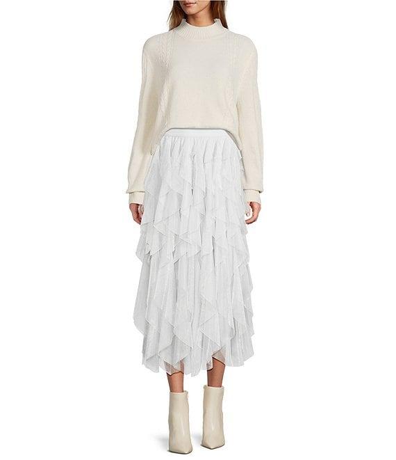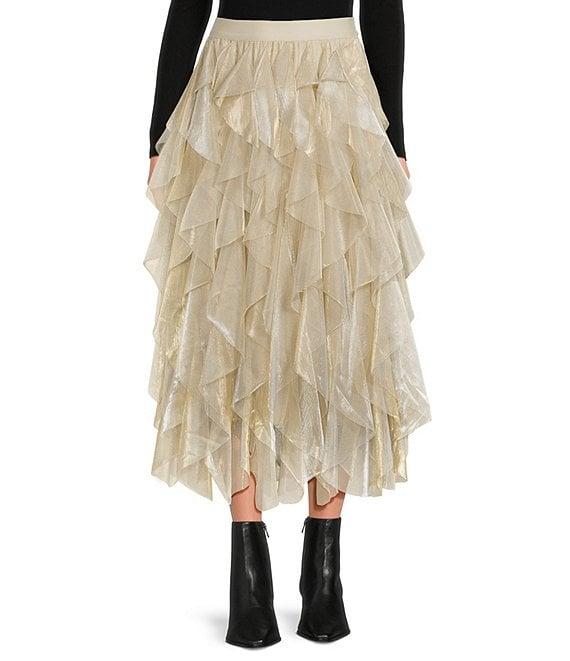 Chelsea & Violet Asta Metallic Tulle Midi Skirt