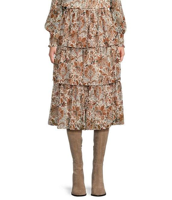 Chelsea & Violet Baroque Garden Print Coordinating A-Line Tiered Ruffled Skirt
