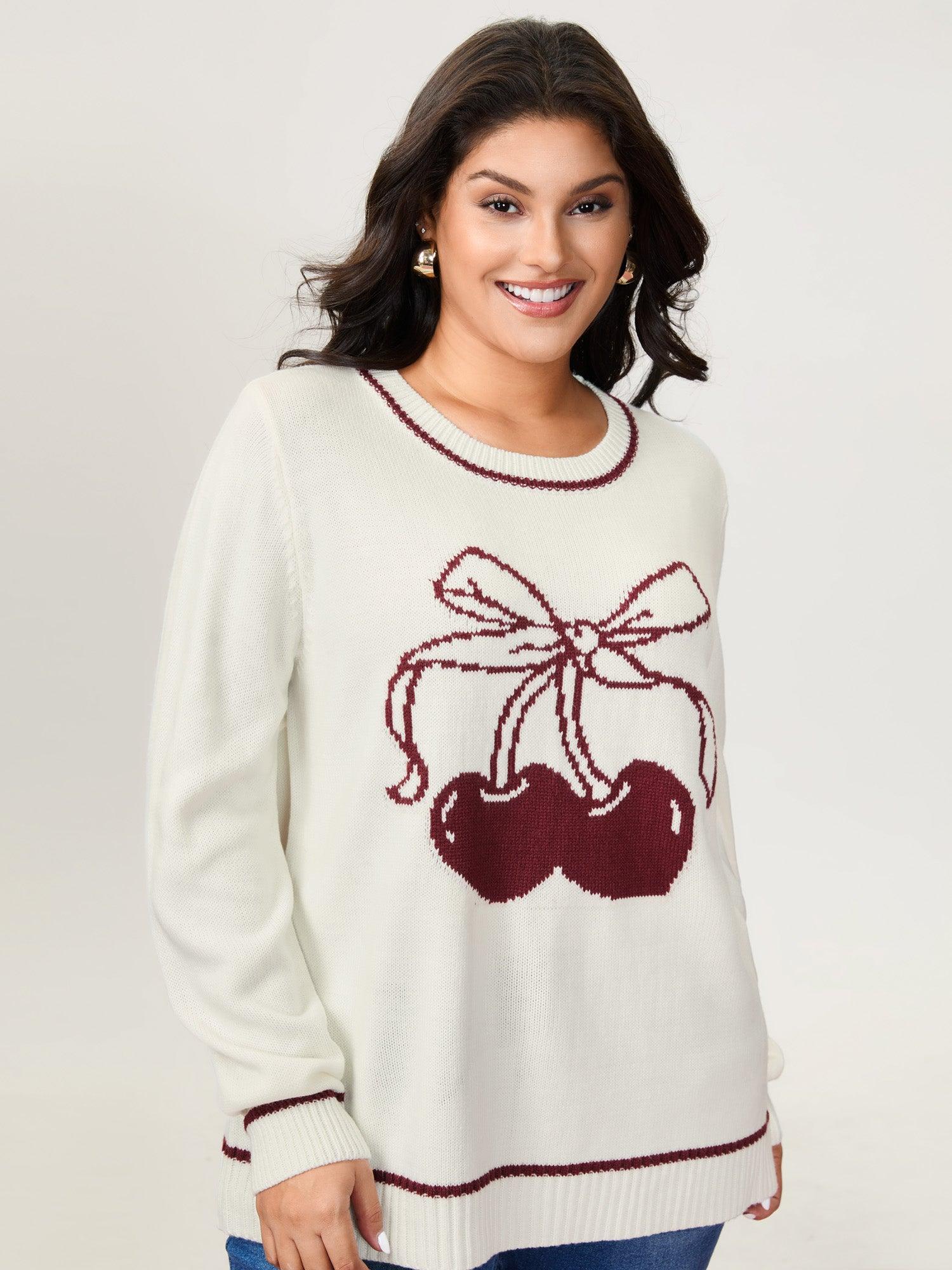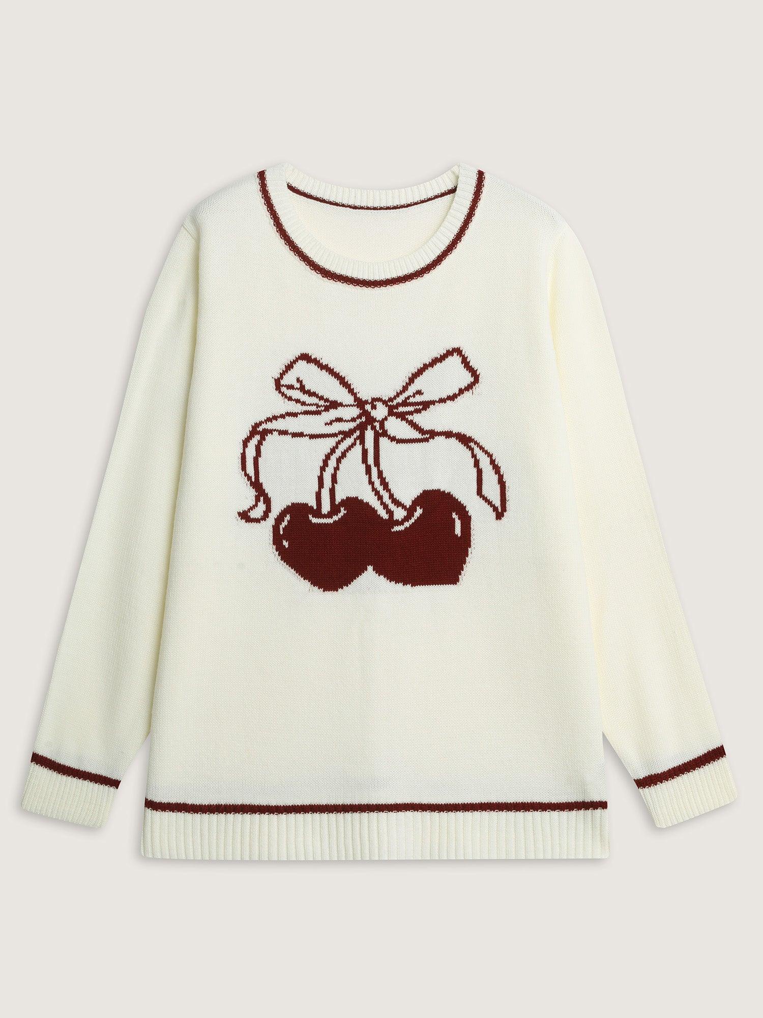 Shop Cherry Pattern Jacquard Color Contrast Pullover now and redefine your style with confidence at BloomChic. Tailored for mid and plus-size women. This trendy Sweaters Cardigans Women, sizes 10-30. Color:Originalwhite;Style:Playful;Neckline:Round Neck;Sleeve Type:Regular Sleeve;Pattern Type:Fruit;Prints:Fruit and vegetable print;Details:Contrast;Pocket:No-pocket;Belt:No-belt;Closure Type:Non