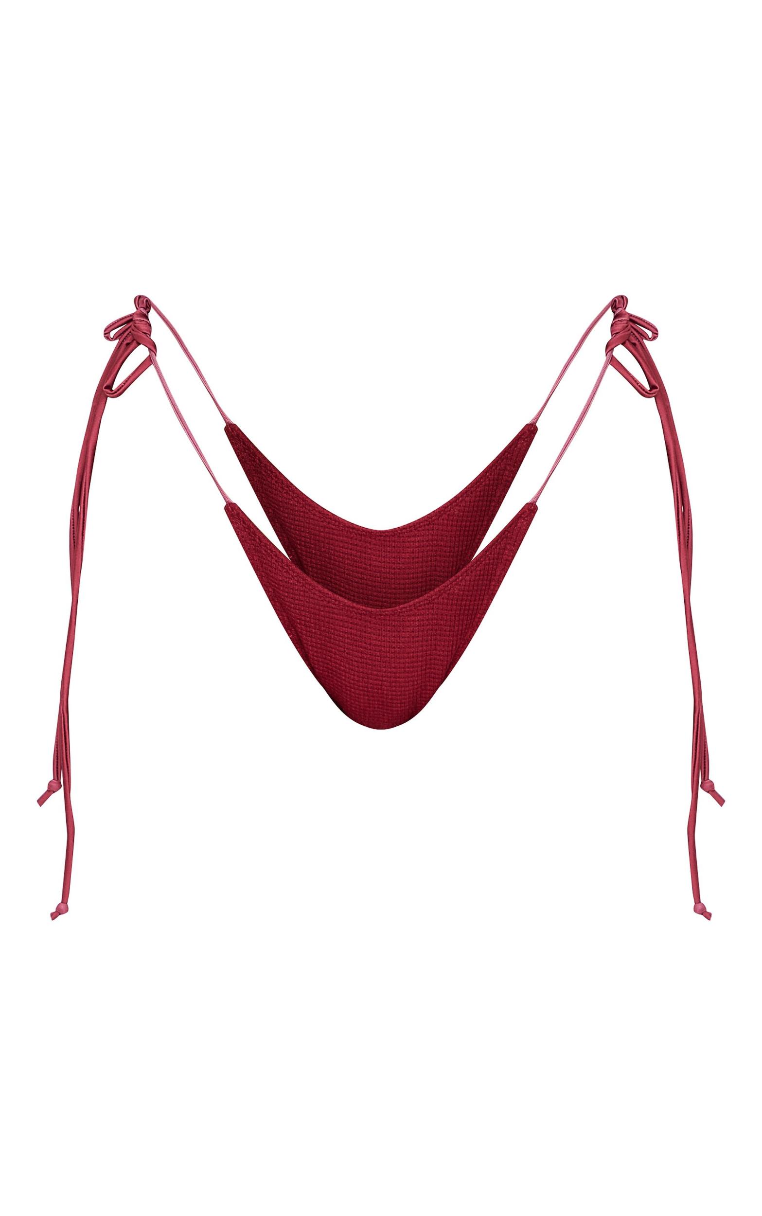 Turn up the heat on your swimwear collection with these cherry red textured micro bikini bottoms, we're seriously in love. They're made using a cherry red textured material with a micro style and a figure-worshipping fit, you won't be able to say no. Team these bikini bottoms with the matching top and gold hoop earrings for a look that will earn you all the likes. Length approx 23cm/9inch (Based on a sample size UK 8) Model wears size UK 8/ EU 36/ AUS 8/ US 4Model Height - 5ft 5inchp]:!mb-0inch>Category: SwimwearProduct type: Tanga Bikini BottomColor: Cherry RedMaterial: SwimDesign: PlainSleeves: SleevelessOccasion: Day