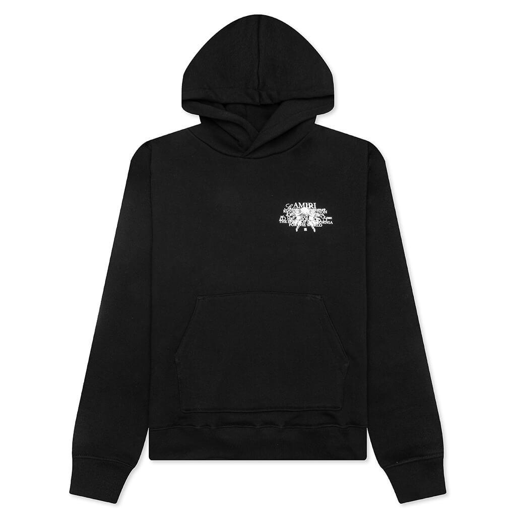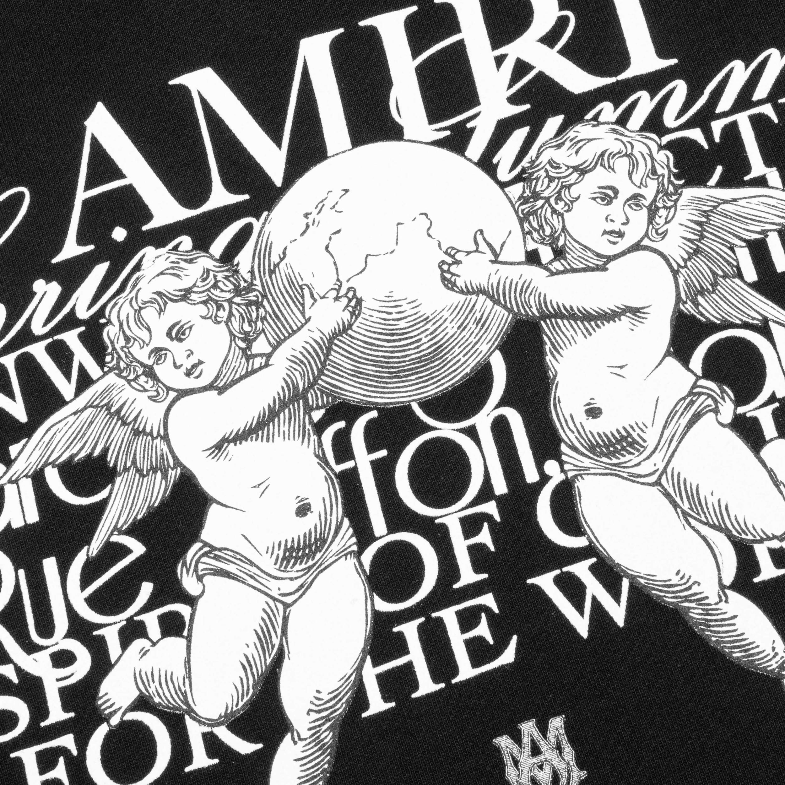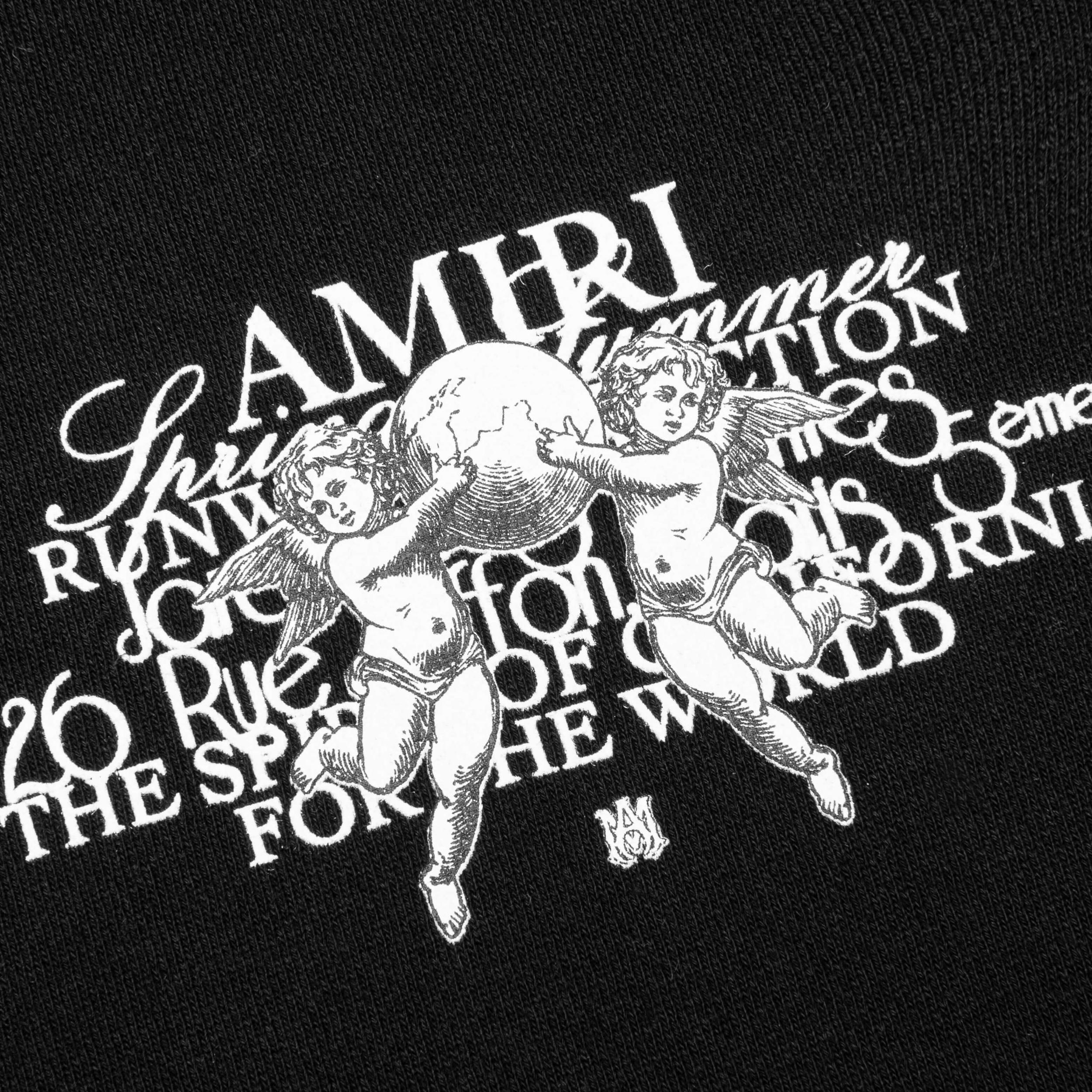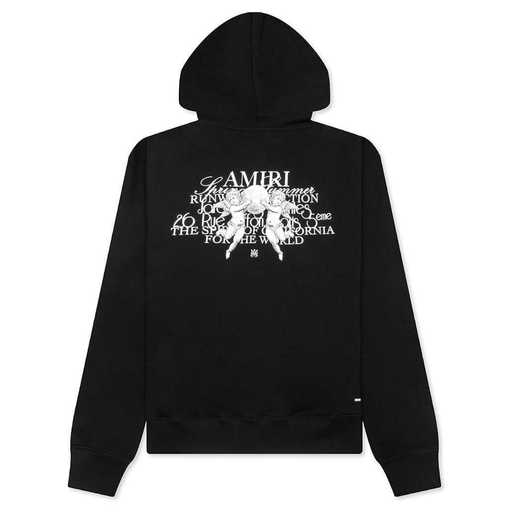 The Amiri Cherub Text Hoodie in Black offers a blend of comfort and style with its 100% cotton construction and ribbed cuffs and hem. It features printed graphics on both the front and back, adding a touch of visual appeal to the classic black hoodie design. 100% cotton Printed graphics on the front and back Ribbed cuffs Style no: AMJYHD1022-001