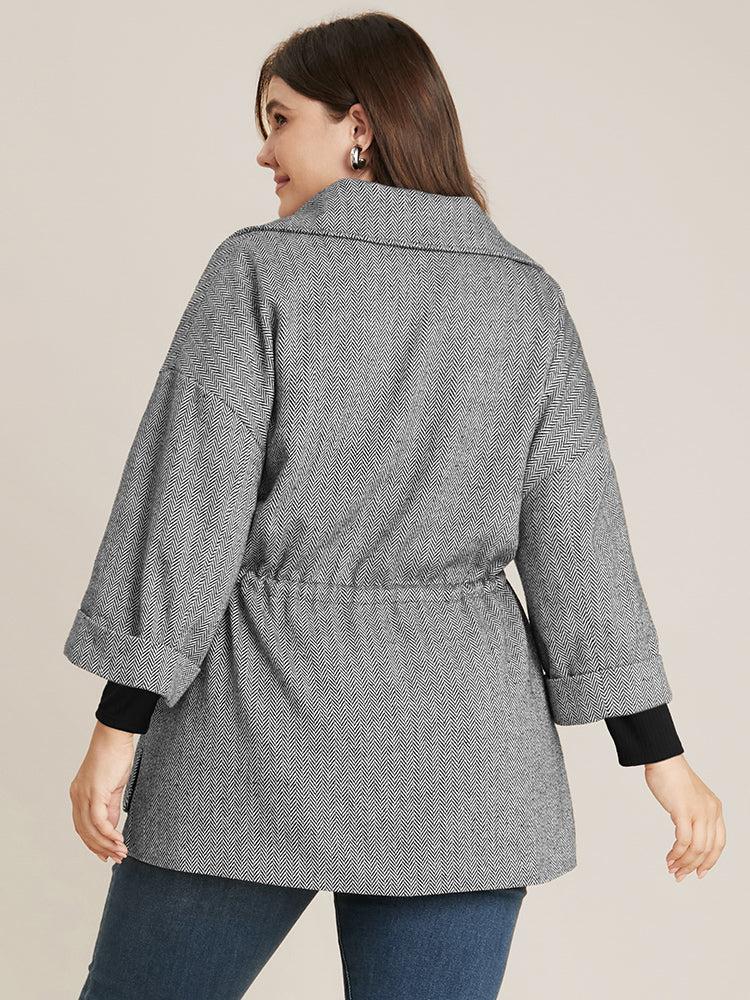Shop Chevron Pattern Pocket Split Hem Drawstring Coat now and redefine your style with confidence at BloomChic. Tailored for mid and plus-size women. This trendy Outerwear Women, sizes 10-30. Season:Winter;Color:Black;Details:Pocket, Slit, Asymmetrical, Drawstring;Pocket:It is perfectly sized to carry a phone.;Belt:No-belt;Lining:Lining