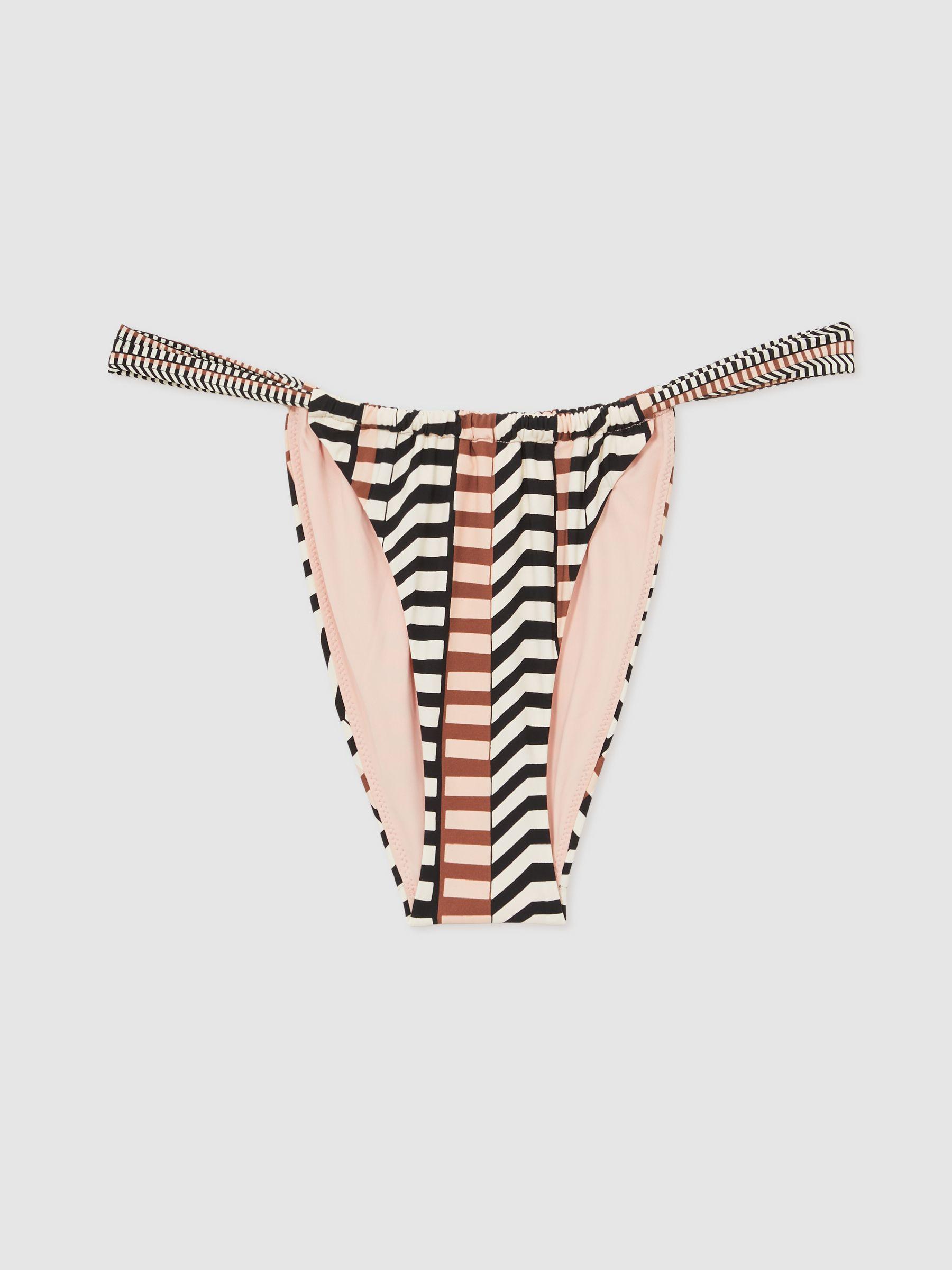 The Kate bikini bottoms are designed with a super high-leg cut and bold chevron stripes for a vibrant, holiday-ready look. Fixed side straps, threaded through single channels at the front and back, offer adjustable coverage. Chevron stripes. Fixed sides. High-leg cut.